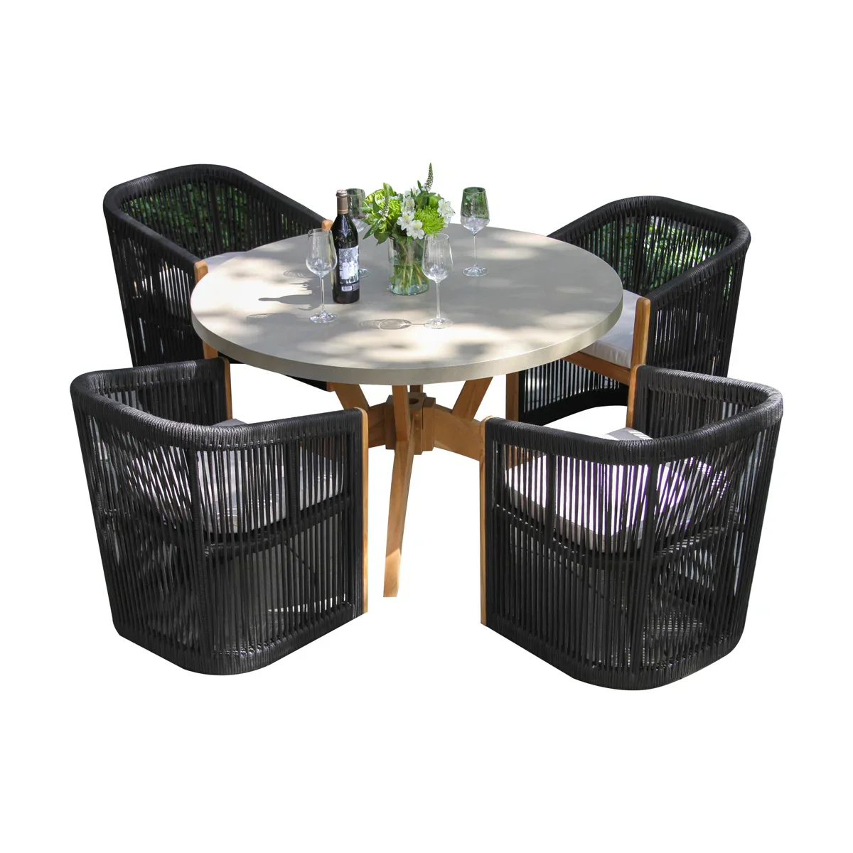 Issoro Outdoor Garden Patio Dining Set 4 Chairs and 1 Table Set (Black) Braided & Rope
