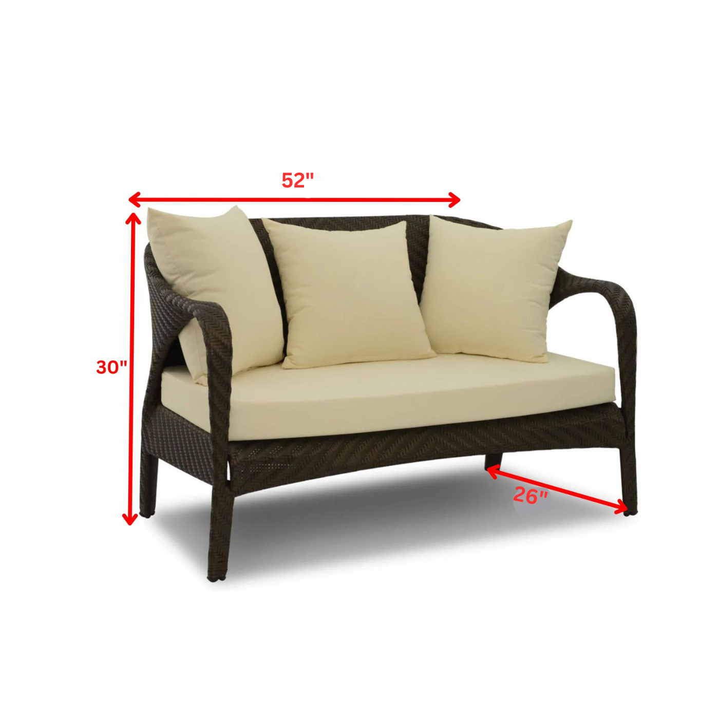 Double seat: Width 52 inch, D 27 inch, Height 30 inch