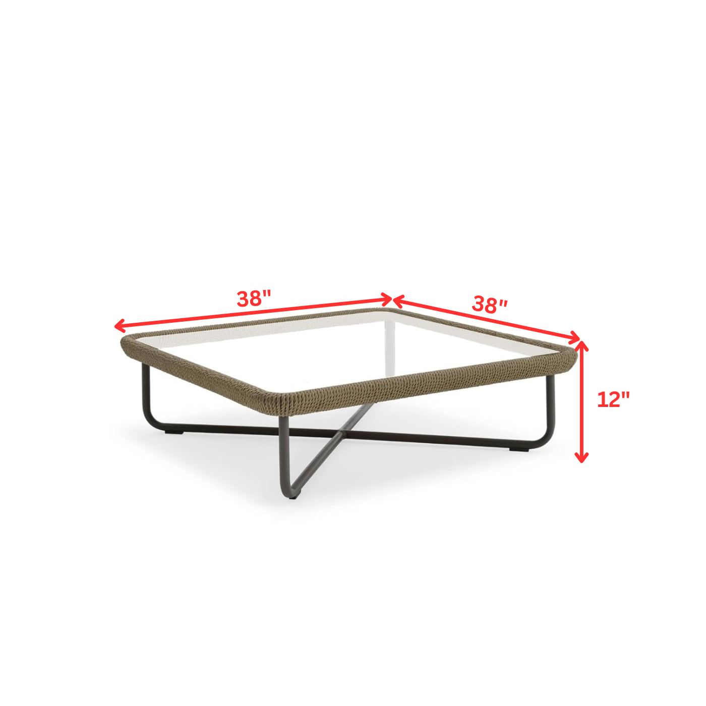 Table: Width 38 inch, D 38 inch, Height 12 inch
