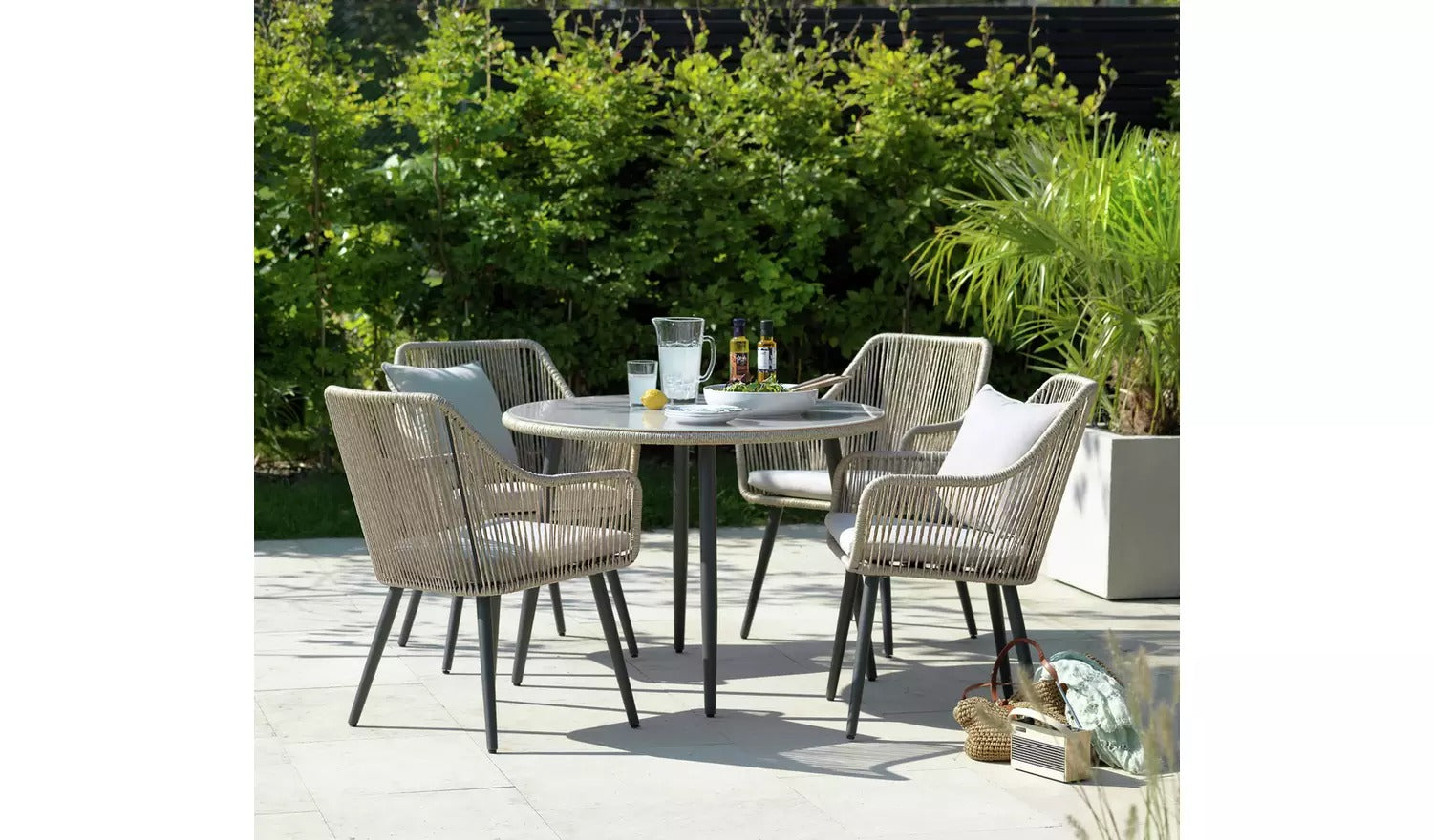Kosh Outdoor Patio Seating Set 4 Chairs and 1 Table Set (Tan) Braided & Rope