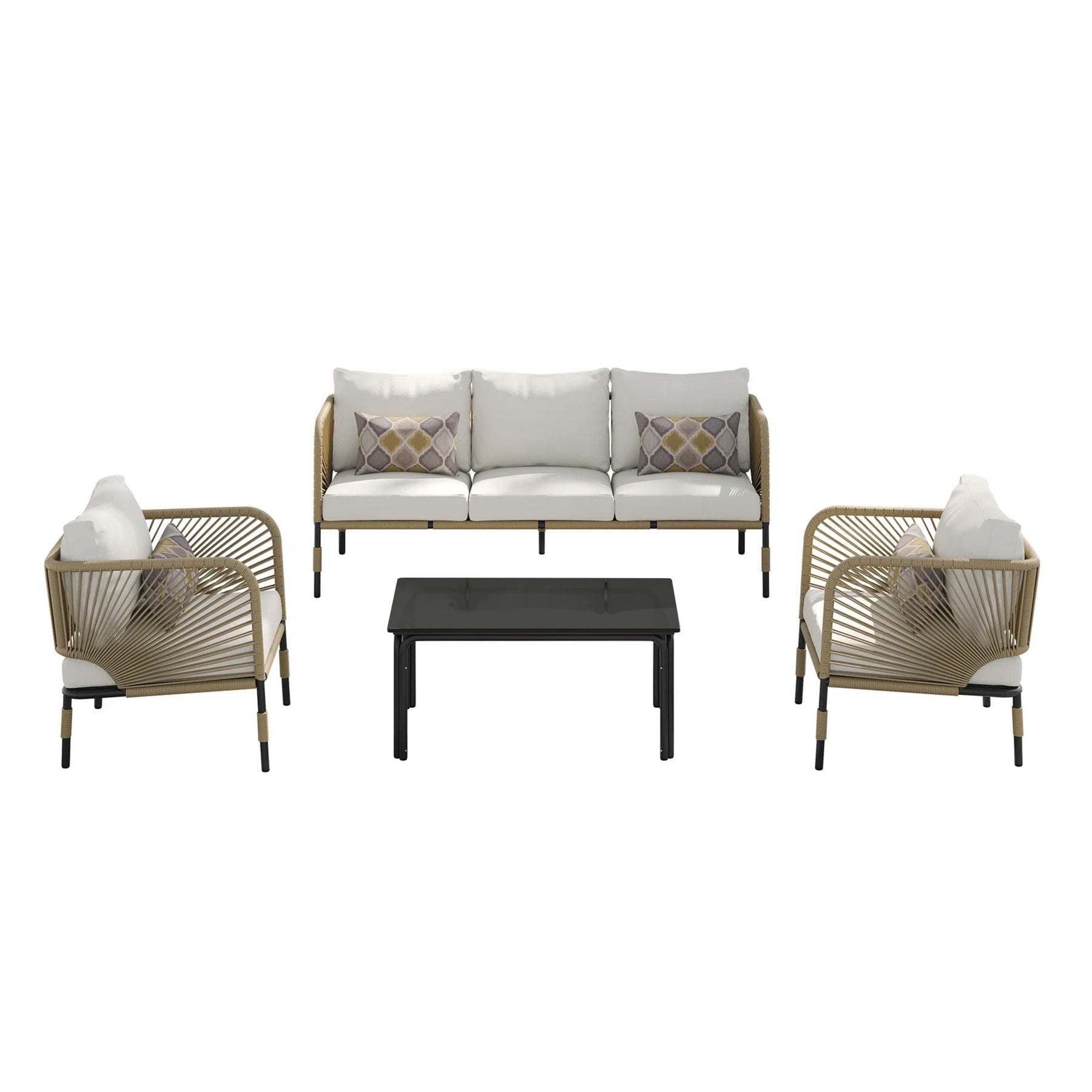 Kylie Outdoor Sofa Set 3 Seater , 2 Single seater and 1 Center Table Braided & Rope(Tan)