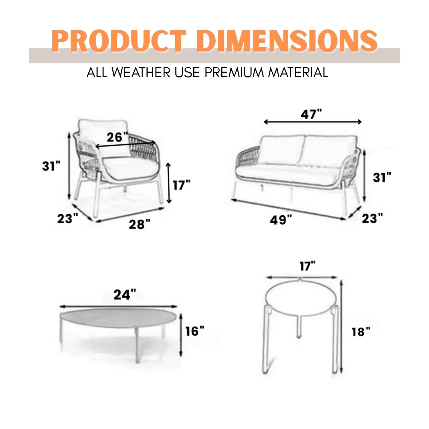 • 2 Single Seater Dimensions: 26″Lx23″W×31″H