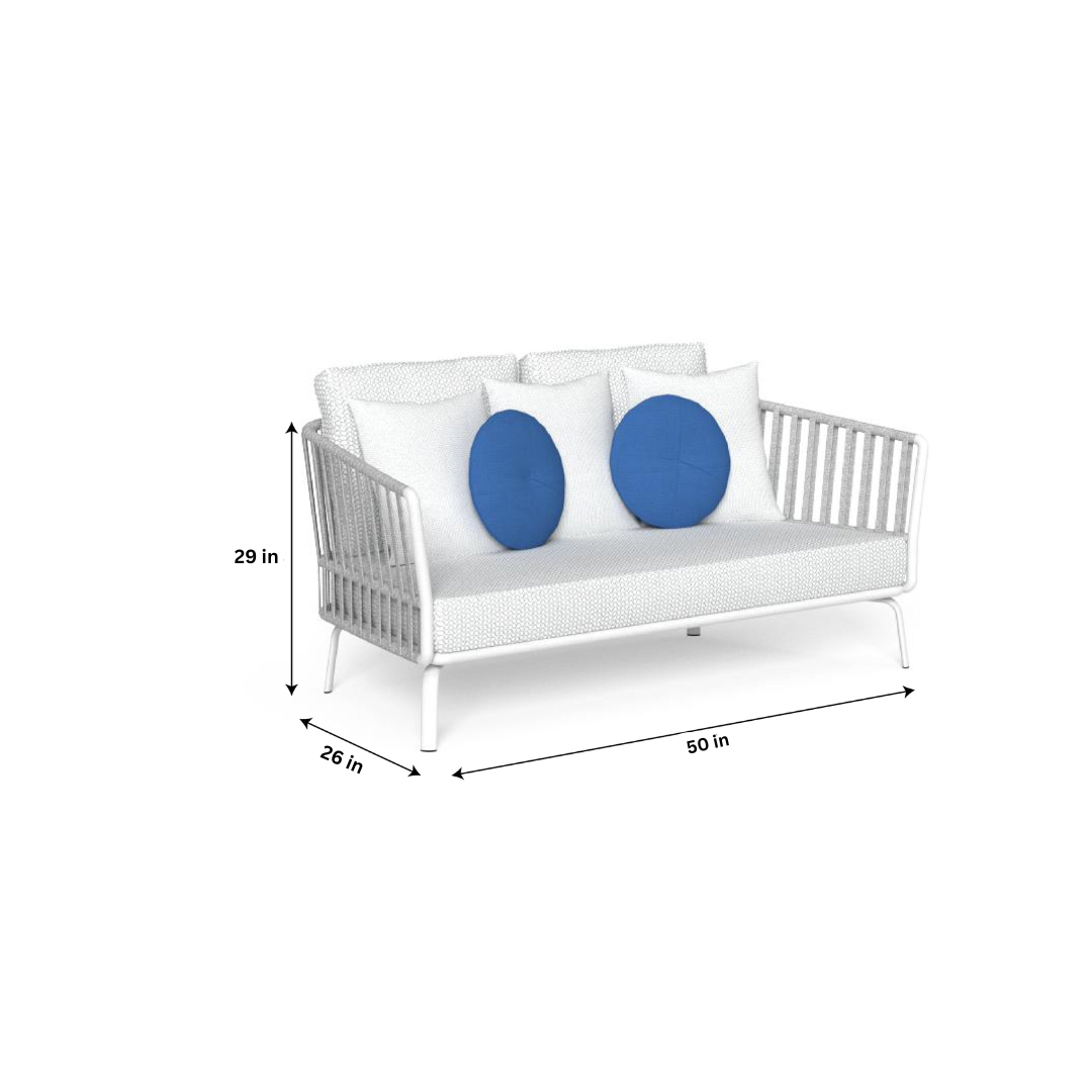 Two seater: Width 50 inch, D 26 inch, Height 29 inch