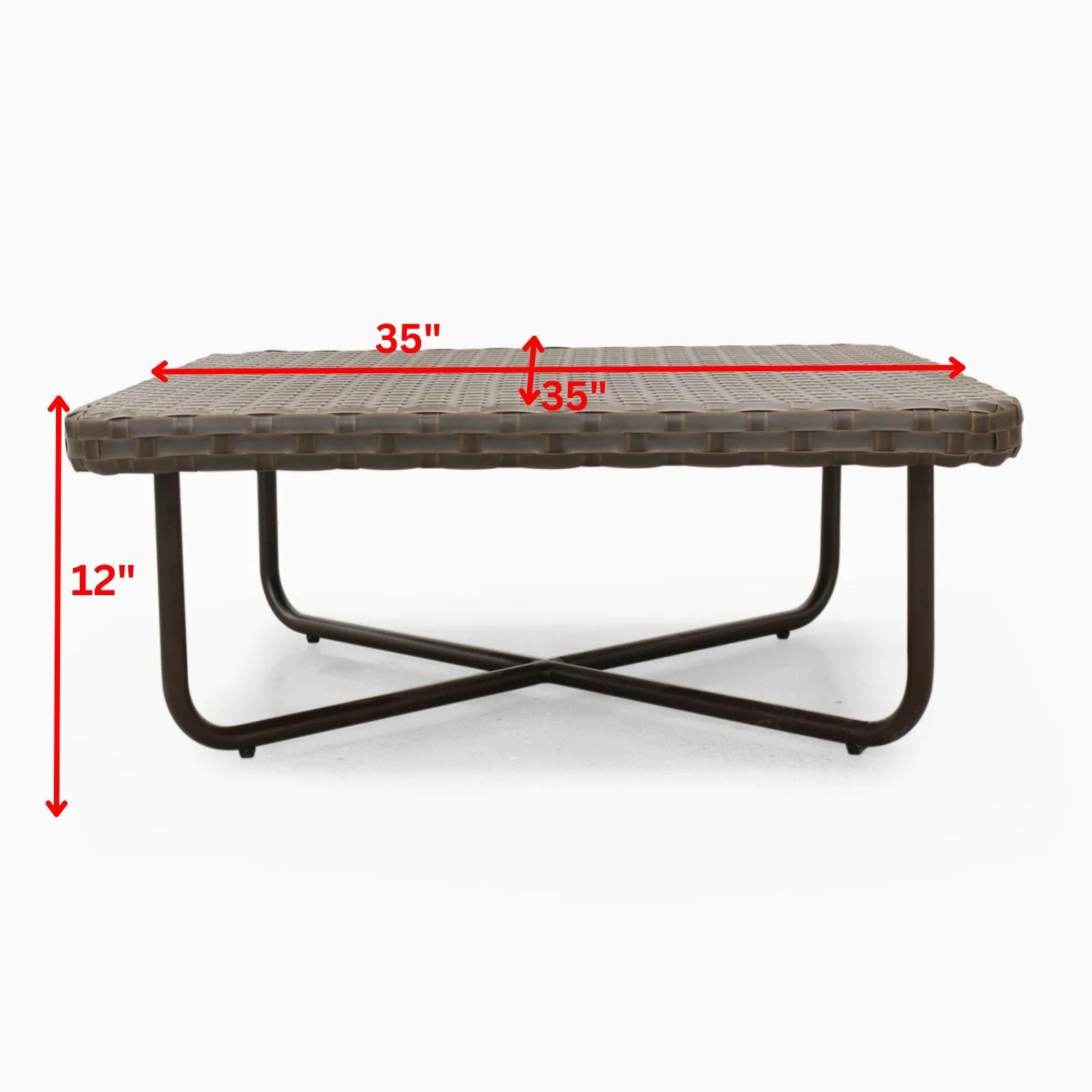 Table: Width 35 inches, D 35 inches, Height 12 inches