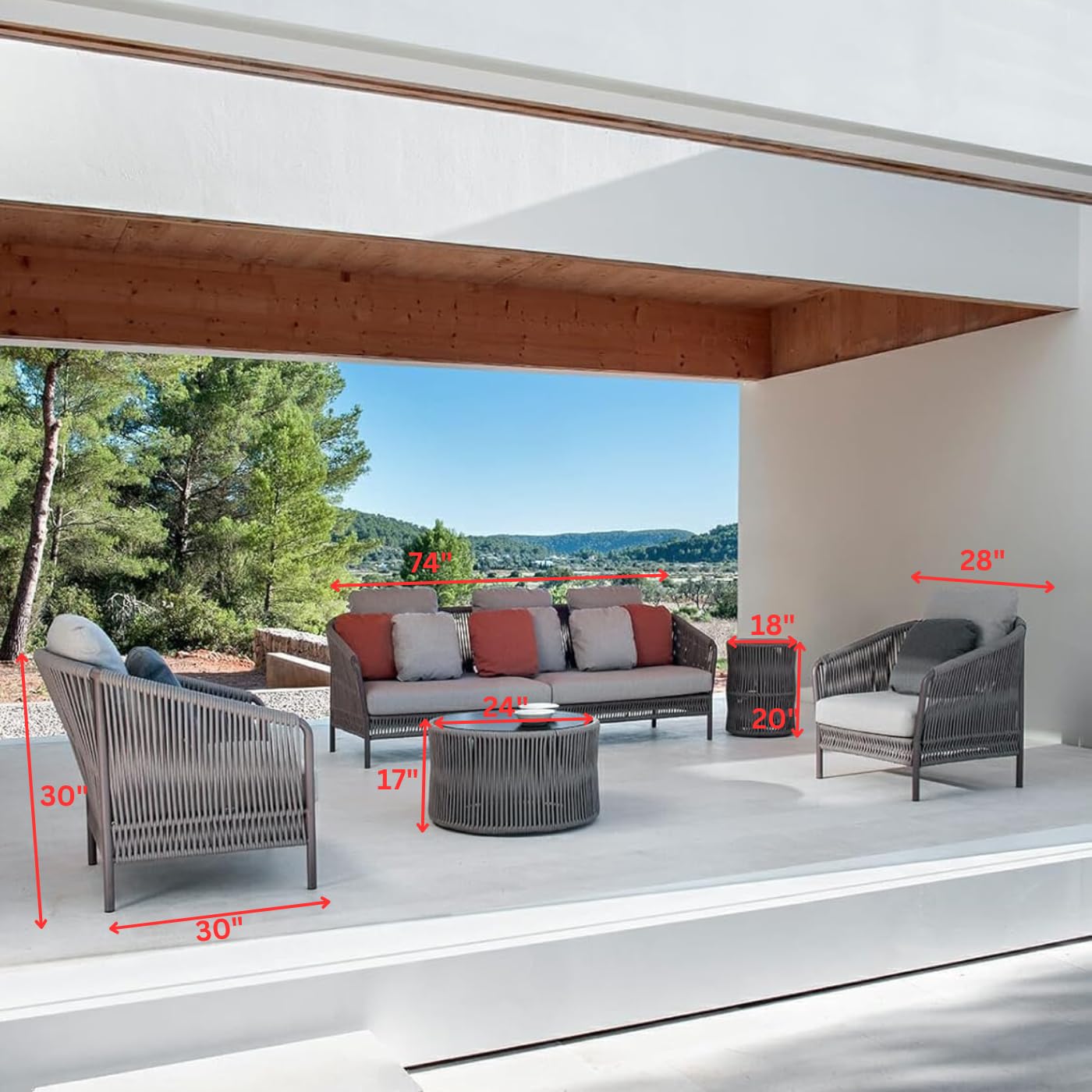 Madaki Outdoor Garden Balcony Sofa Set 3 Seater , 2 Single Seater and 1 Center Table & 1 Side Table Set, Braid & Rope (Grey)