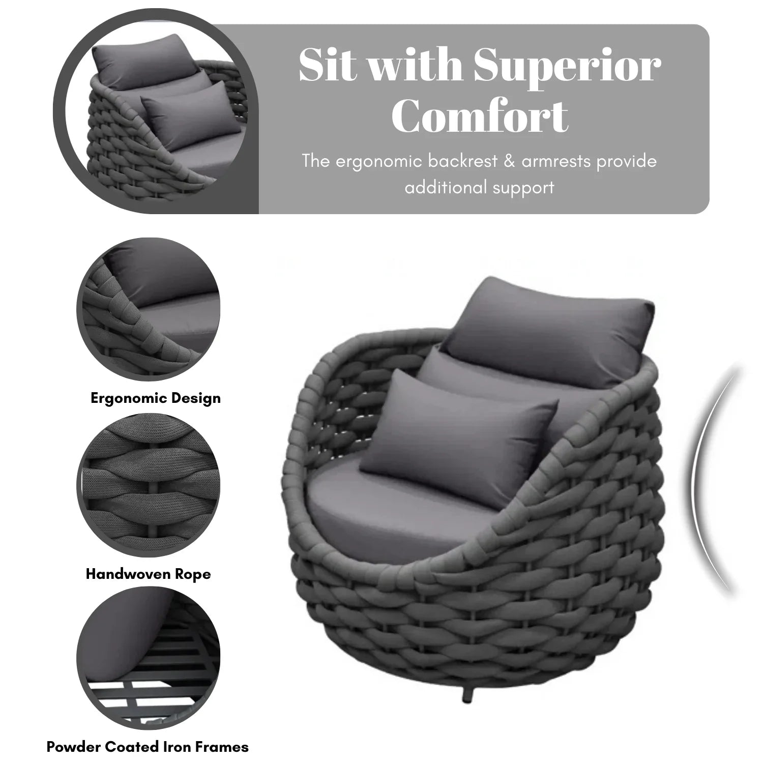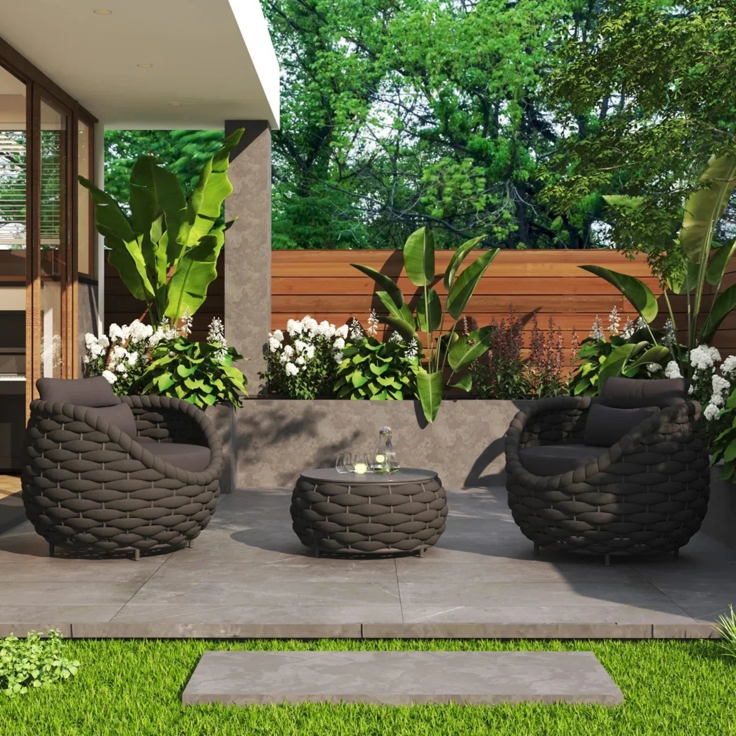 Miyako Nest Shape 3-Piece Hand-Woven Rope Patio Set