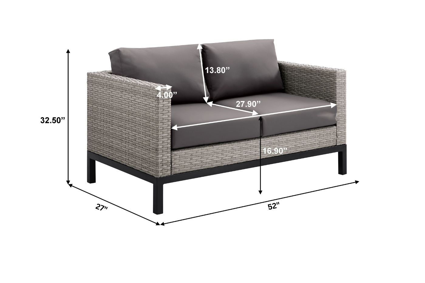 Two seater: Width 52 inch, D 27 inch, Height 32 inch
