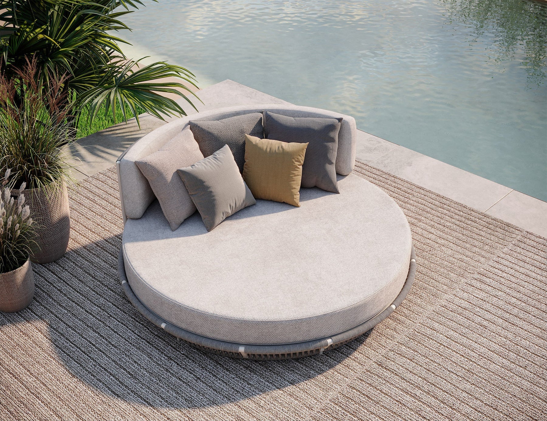 Nemi Outdoor Poolside Sunbed With Cushion Daybed (Grey) Braided & Rope