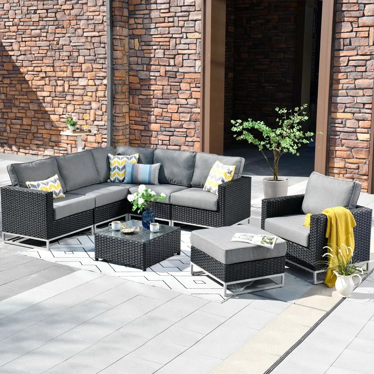 Norberta Outdoor Rattan Wicker 7-Seater Sofa Set