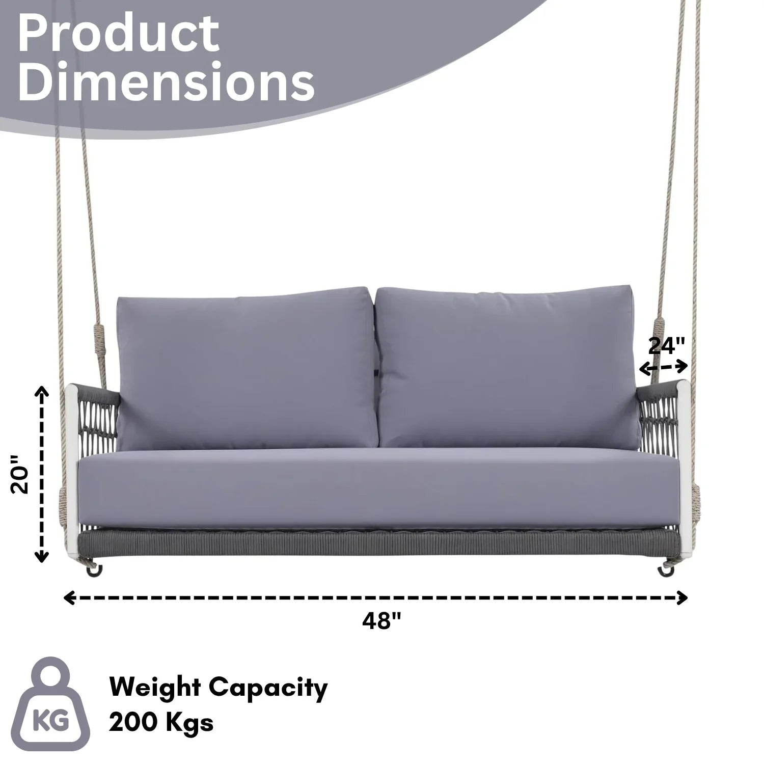 - Swing Dimension: 48"Lx24"Wx20"H