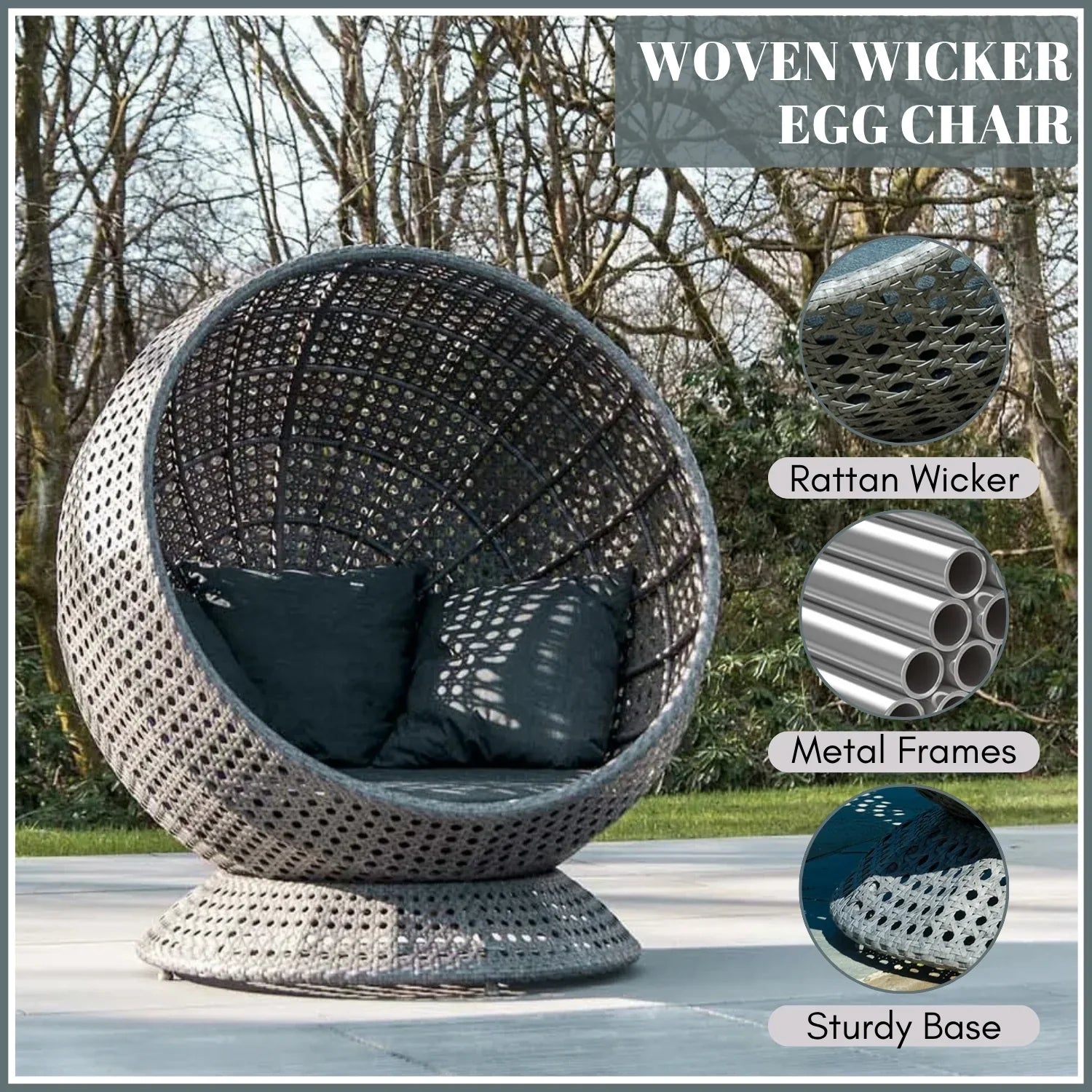 - Cushion Color: Dark Grey