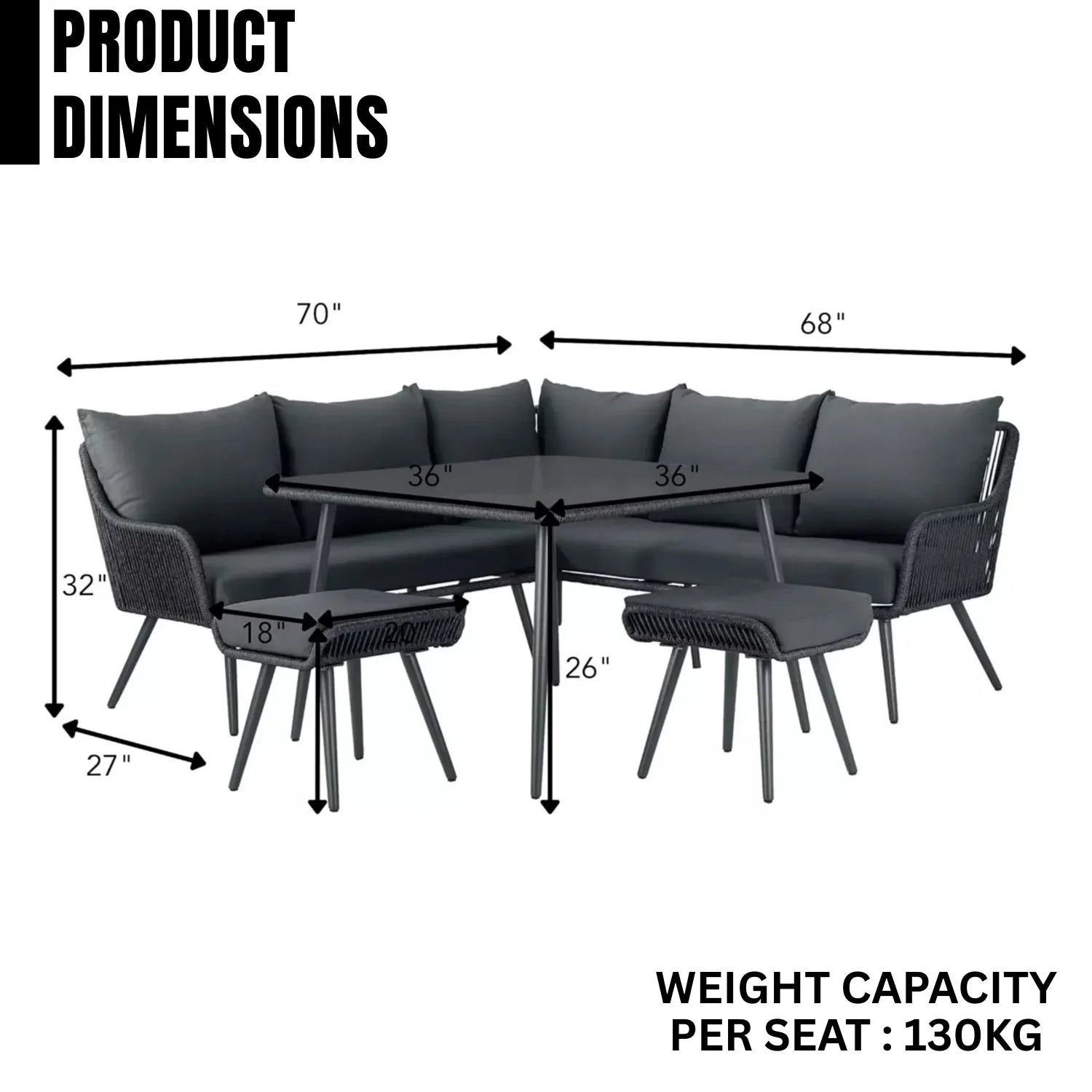 - 2 Seater Dimensions: 41"Lx27"Wx32"H