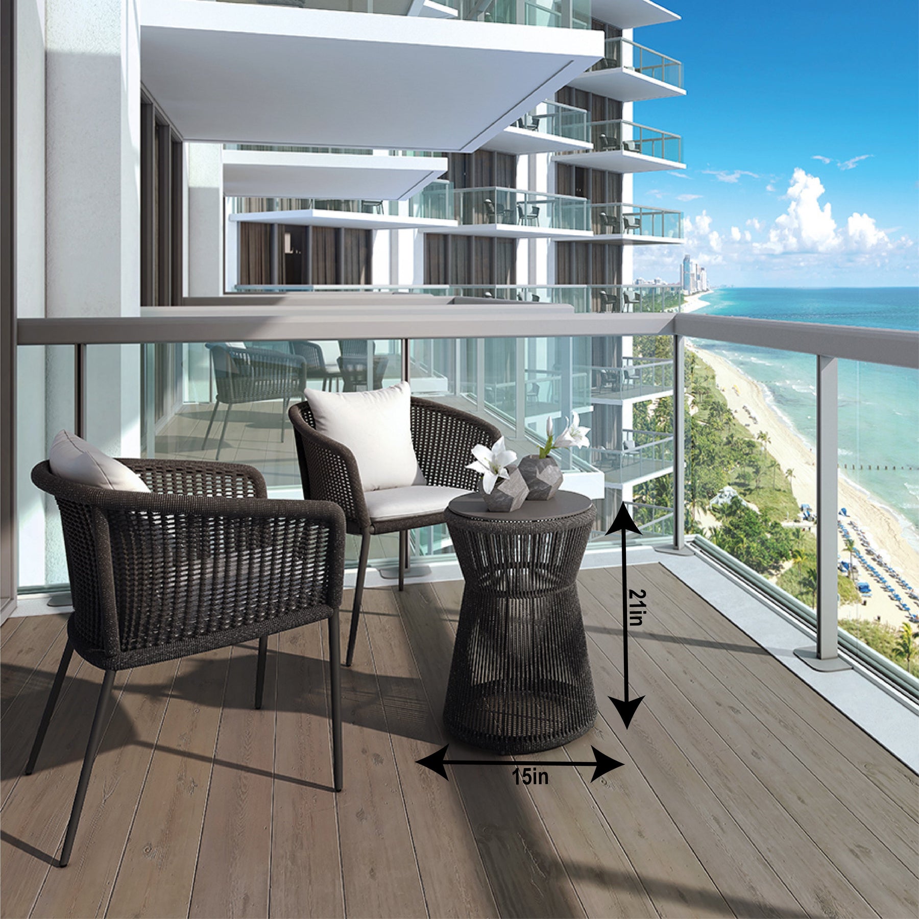 Table: L 15 x W 15 x H 21 Inches