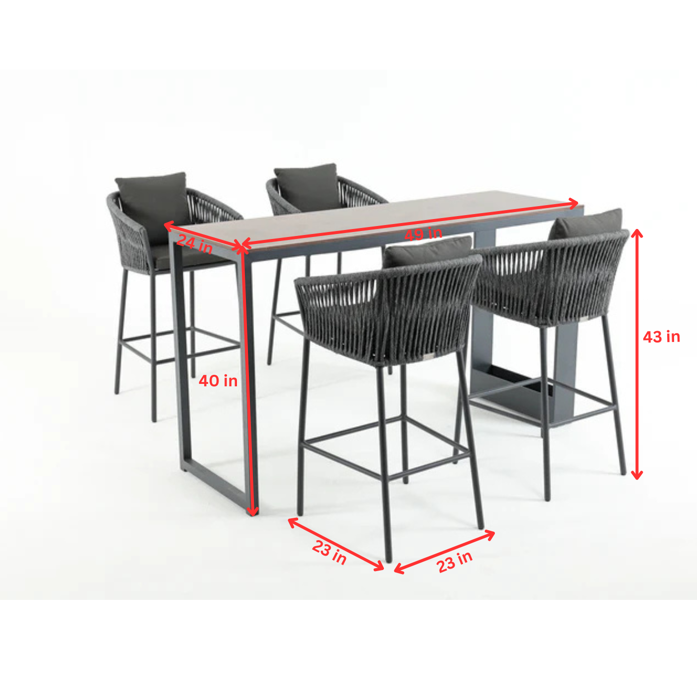 - Patio Bar Sets This bar set is ideal for any outdoor area. Ideal for sharing a drink with family or friends the bar set offers high bar table and bar stools. The high-quality Rope is completely weatherproof and can be left outside all year round without the risk of weather damage.