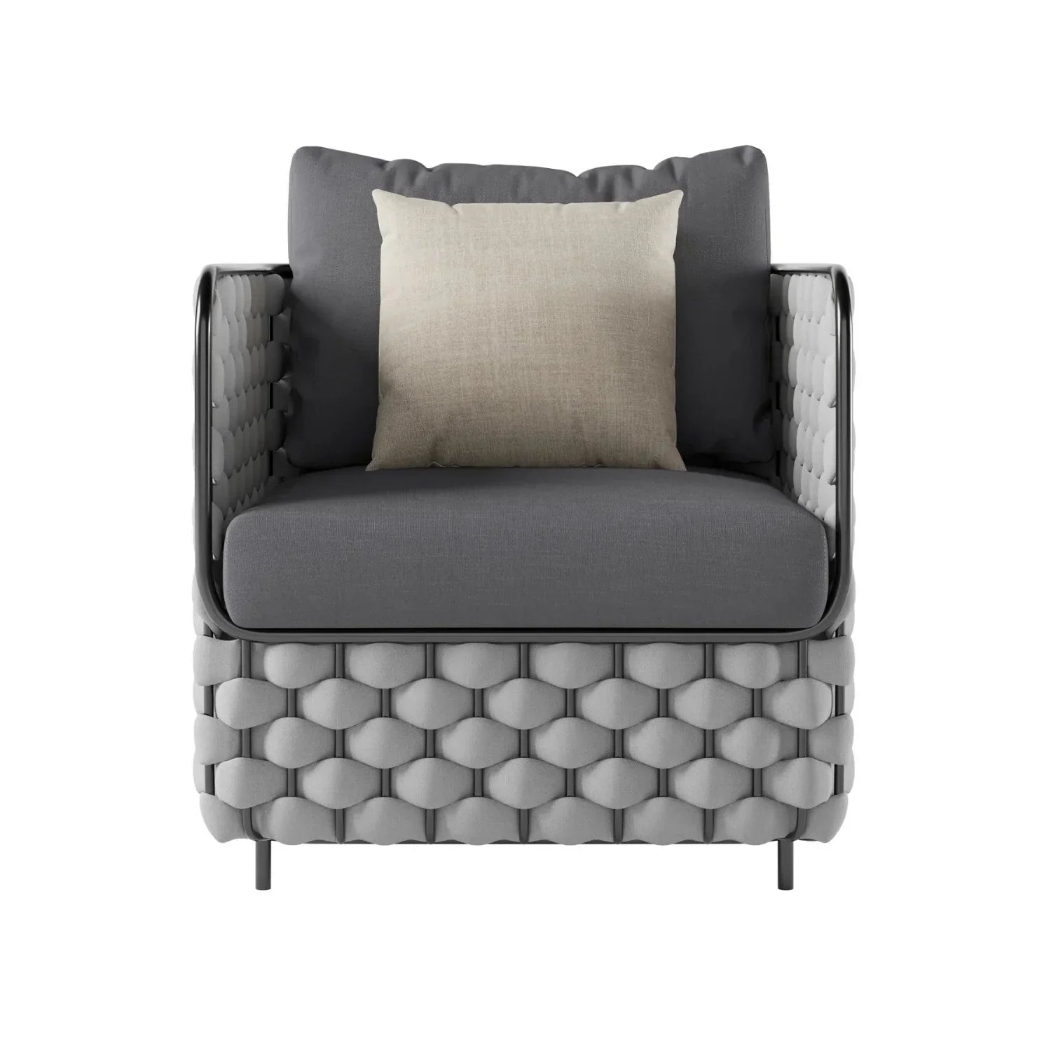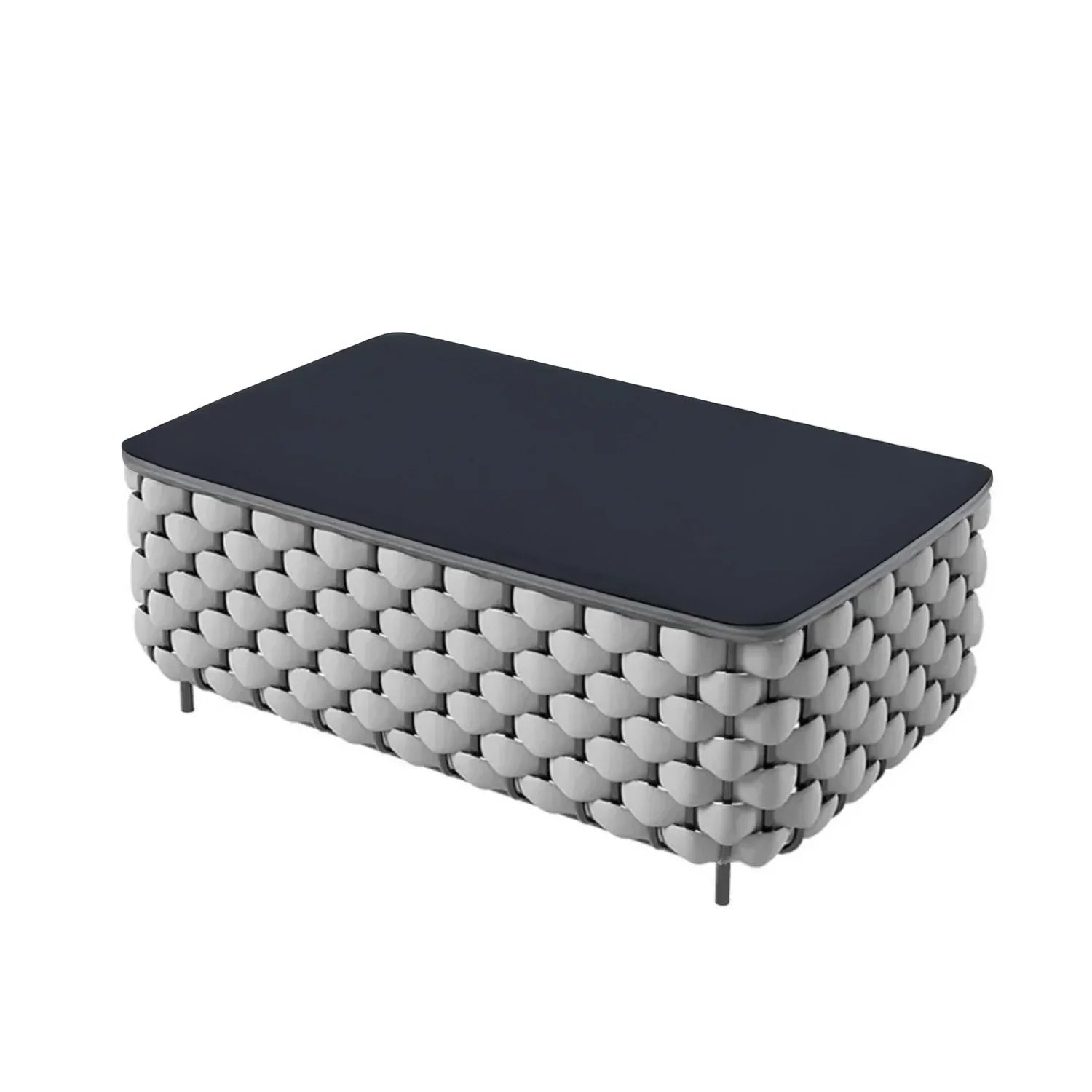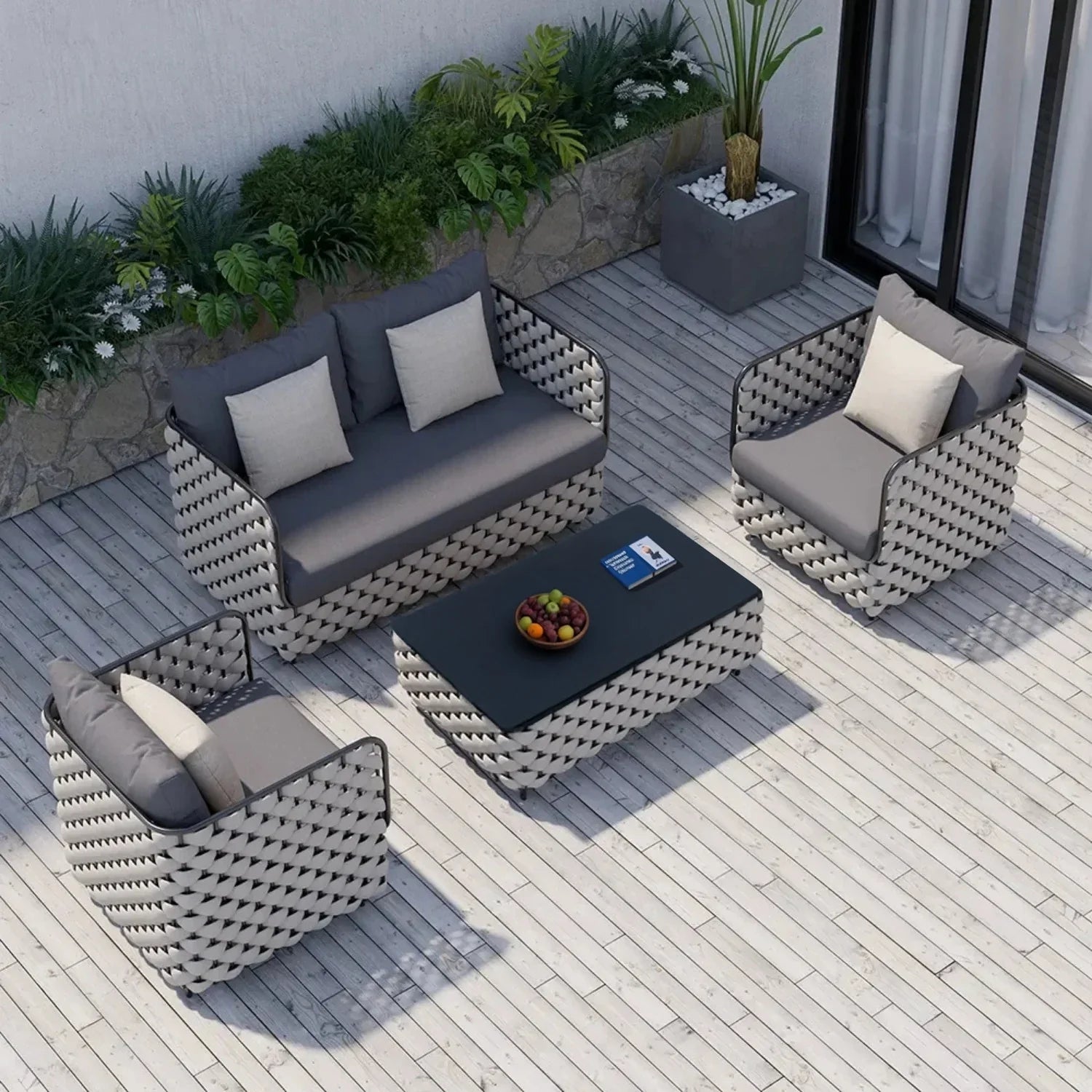 Rina 4 Piece Outdoor Rope Sofa Set with Glass Top Coffee Table (Light Grey & Dark Grey)