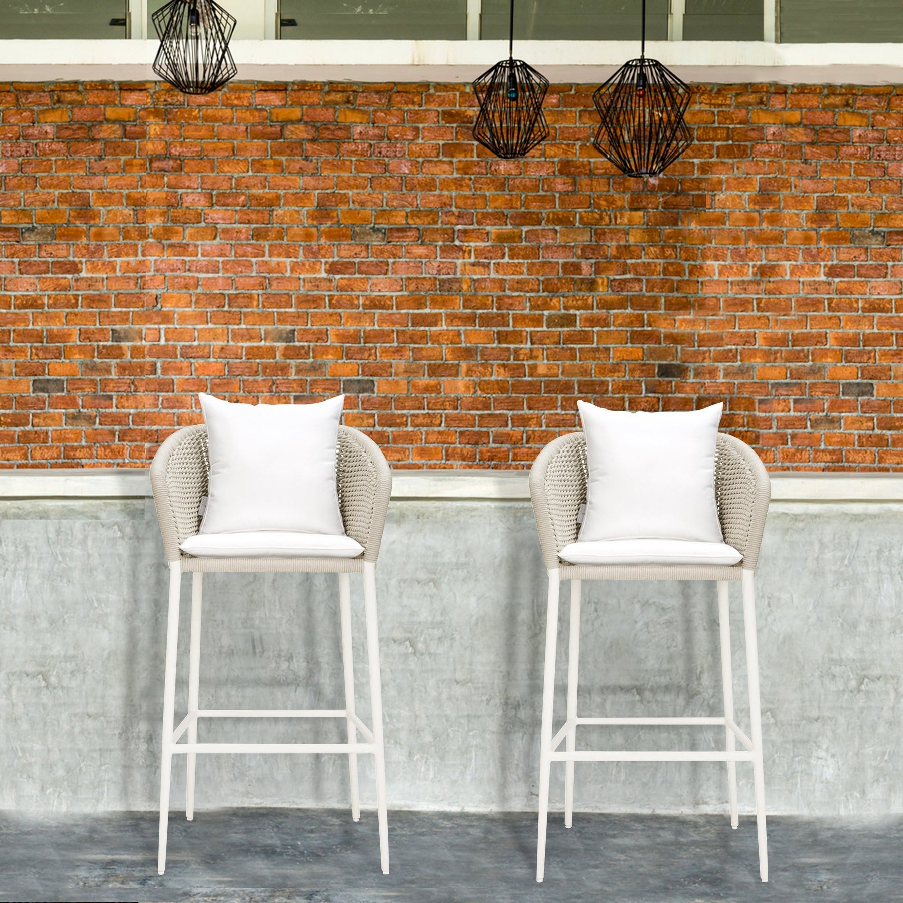 - Patio Bar Chair This includes high-top Bar chair. The MS frames Powder coated and Handwoven With Braided & Rope seats are weather resistant to guard against inclement weather. The Bar stool is coated to guard against everyday wear and tear. The chairs can be easily stored under the high dining table making this set a perfect space saver for any outdoor area.
