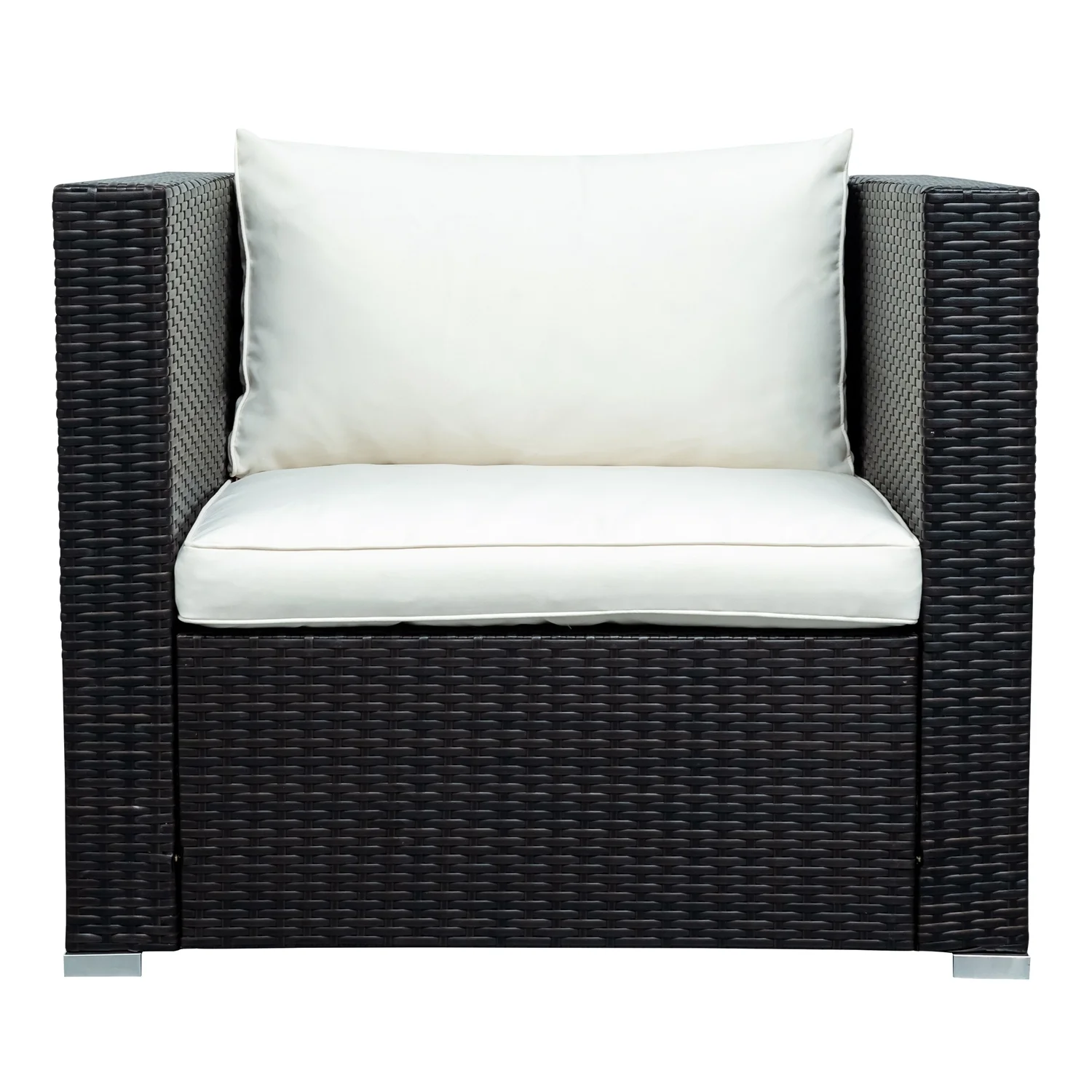 Silas Outdoor Garden Balcony Sofa Set 5 Seater, Single seater With 1 Ottoman and 1 Center Table Set (Black + White)