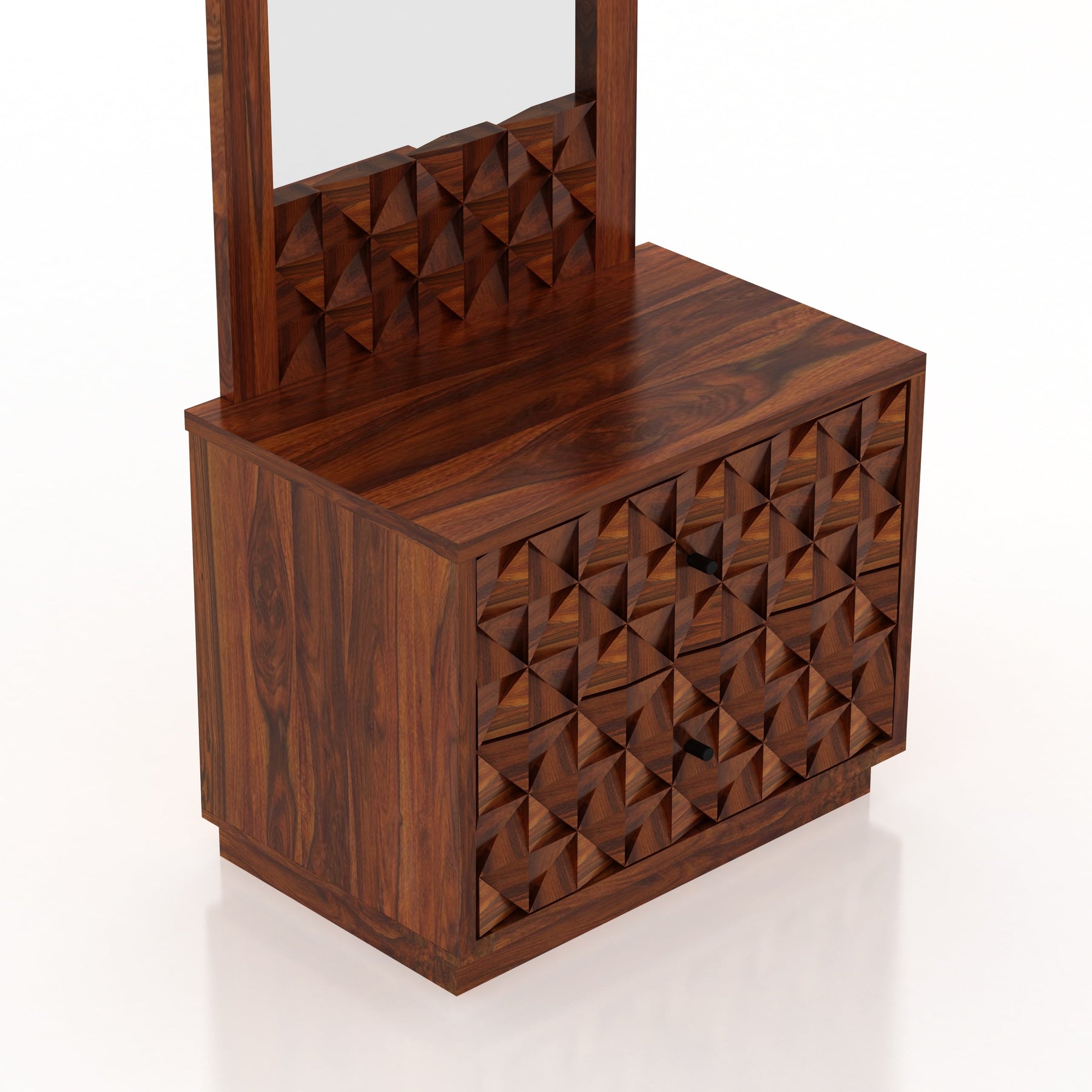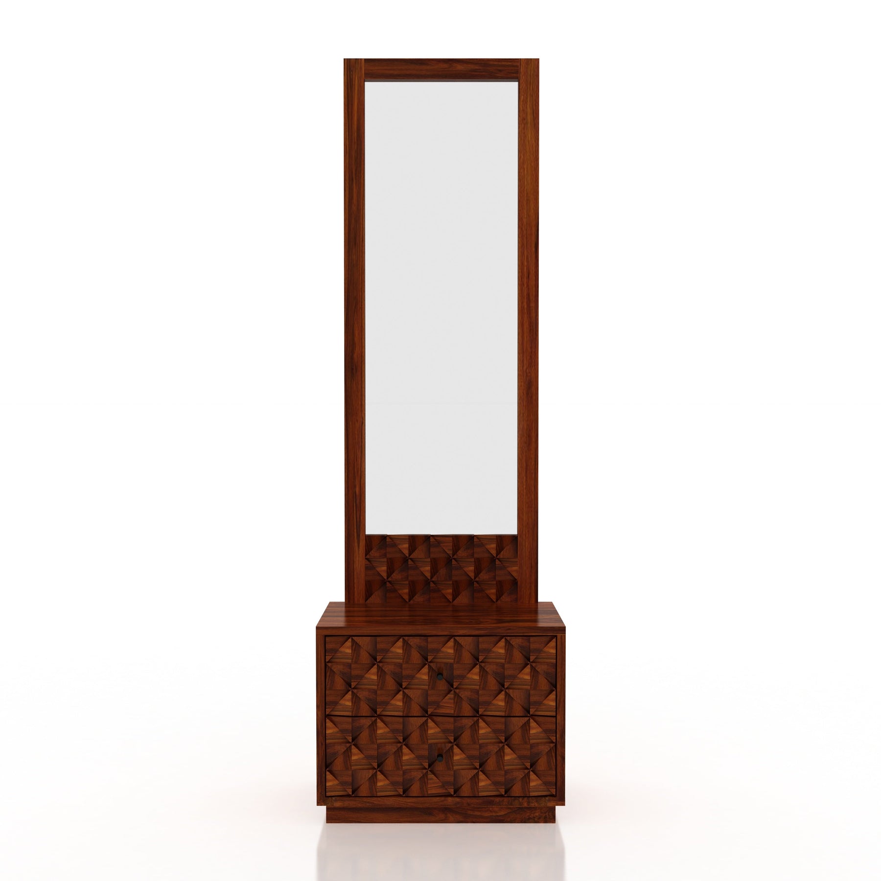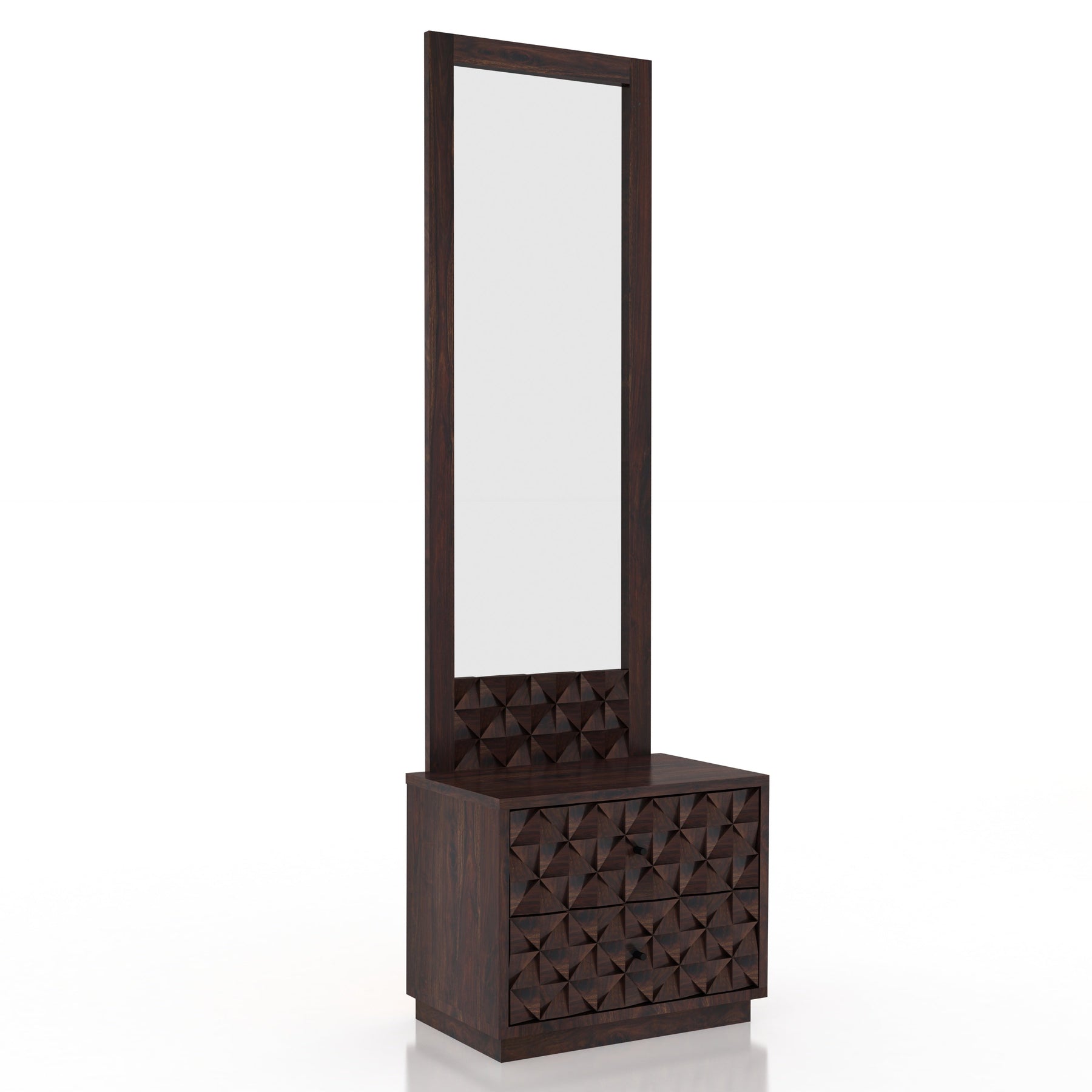 Enhance your bedroom with the Susana Dressing Table Mirror, beautifully crafted from premium Solid Sheesham Wood. Designed for lasting strength and timeless appeal, this elegant piece features two spacious drawers for convenient storage and an included mirror that completes the look with sophistication.