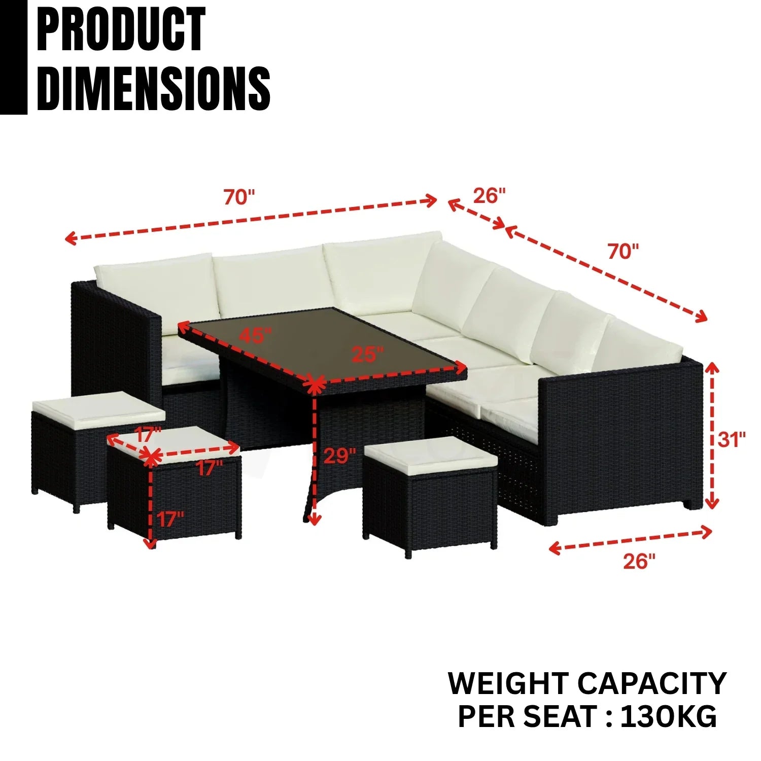 - 3 Ottomans Dimensions: 17″L×17″W×17″H