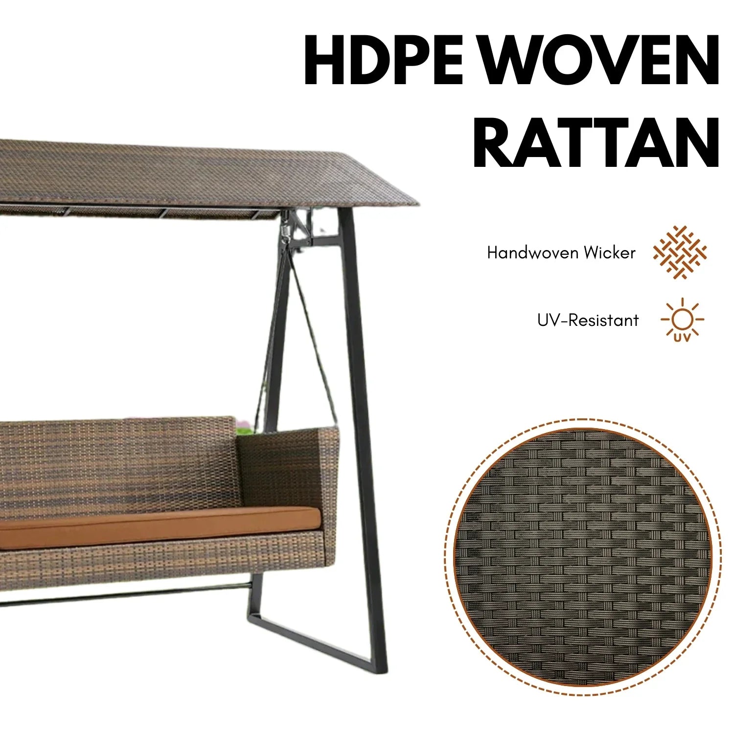 Tigist All Weather Wicker 2-Seat Patio Swing Chair with Shade & Cushions