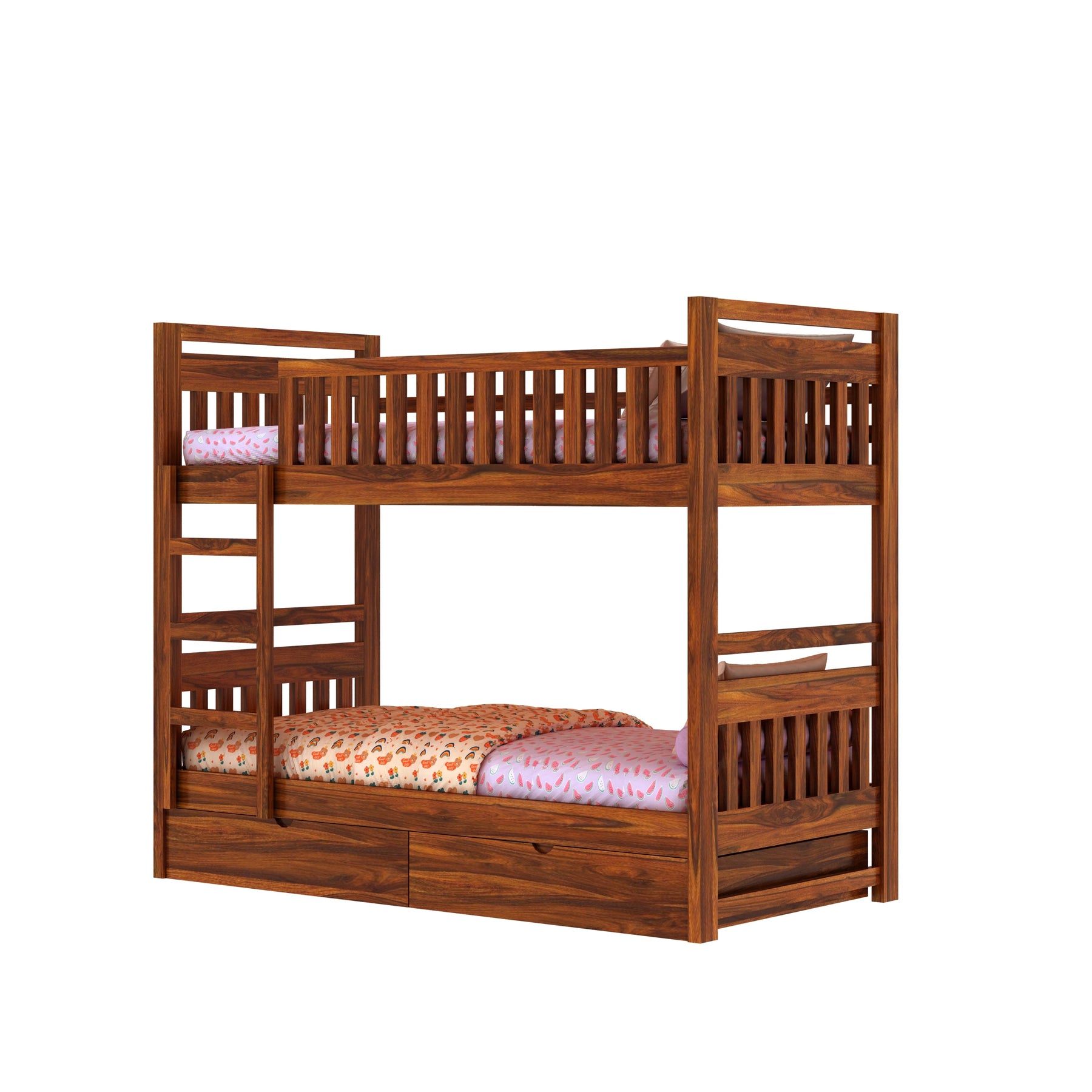 Experience the perfect blend of space-saving design, durability, and elegance with the Valeria Solid Sheesham Wood Bunk Bed. Expertly crafted from premium solid Sheesham wood, this bunk bed features a sturdy built-in ladder and two spacious drawers, offering smart storage and everyday convenience.