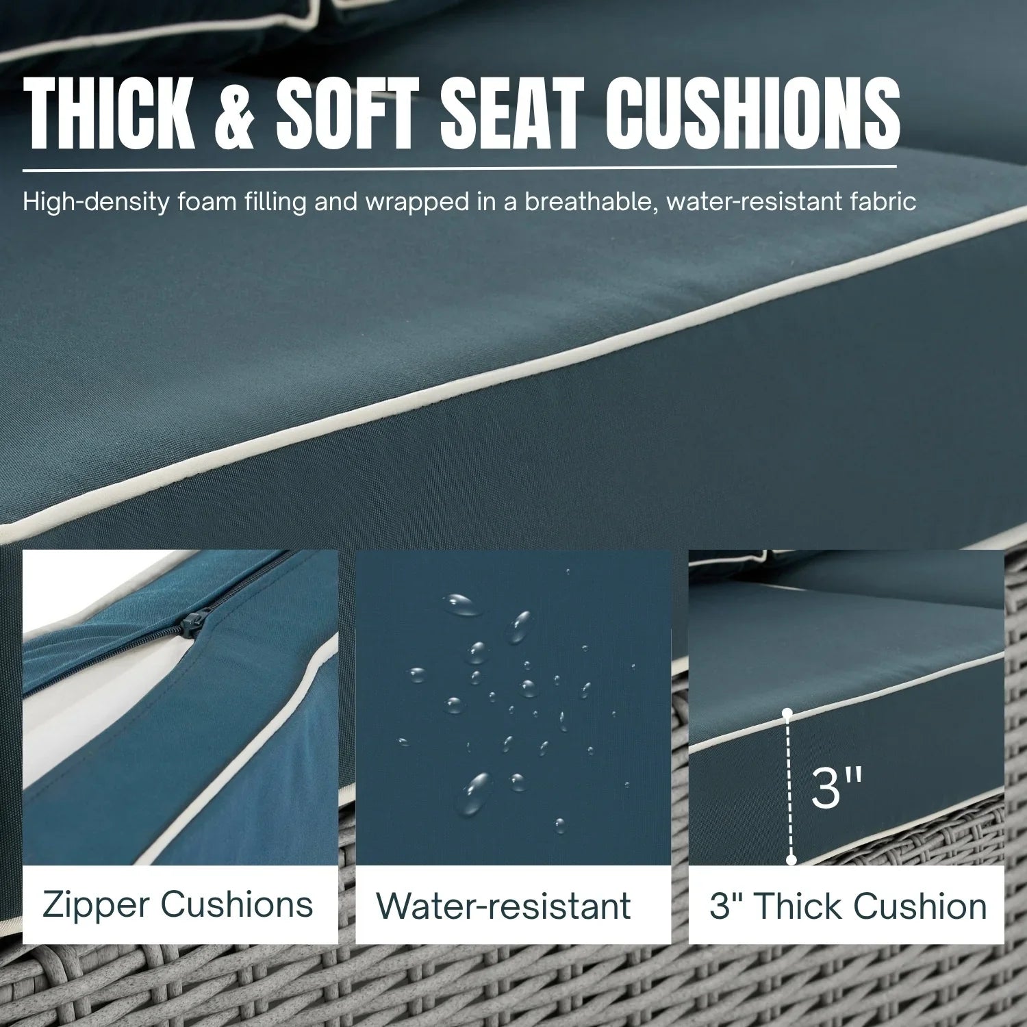 - Cushion Fabric: Water Resistant