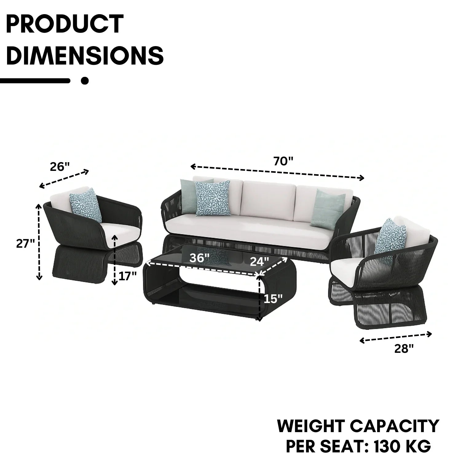- 2 Single Seater Dimensions: 26"L×28"W×27"H