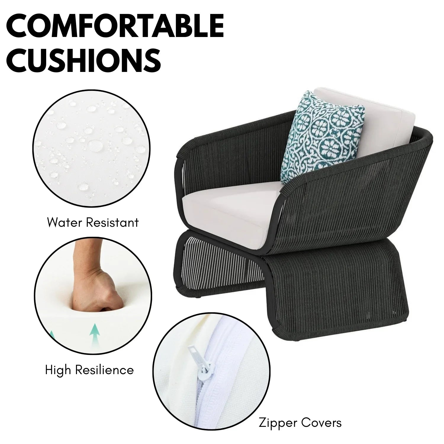 - Cushion Fabric: Water Resistant