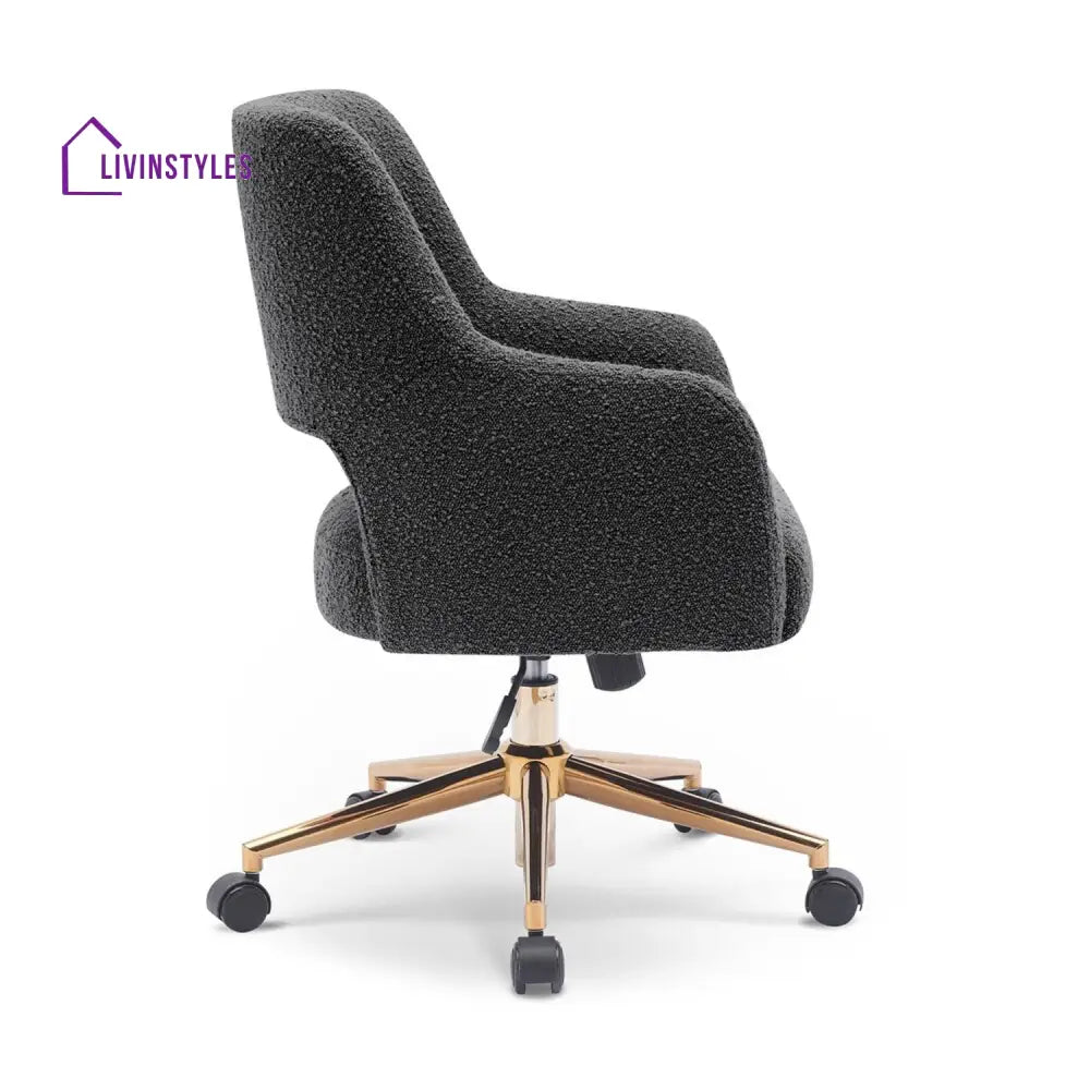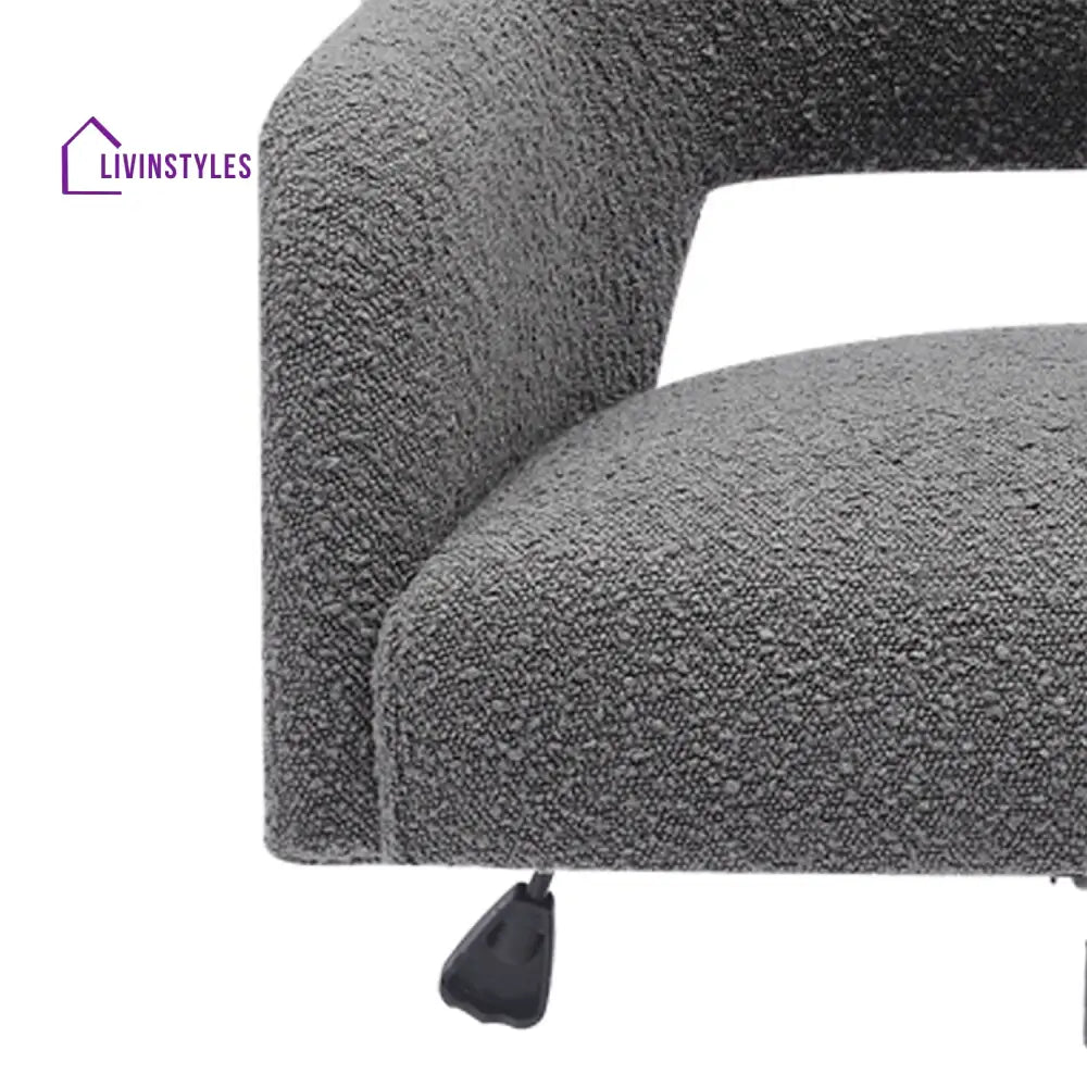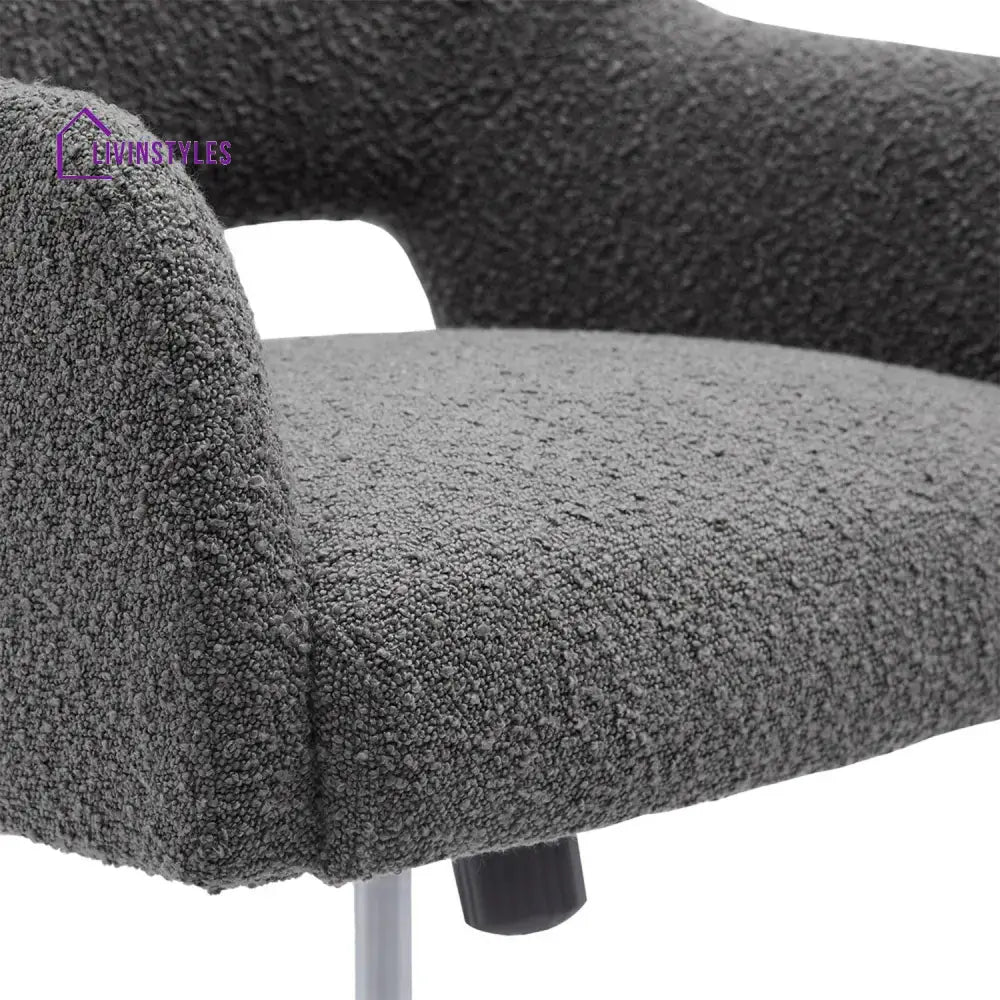 The Boucle Crafted Office Chair in Cream with armrests and wheels adds luxury to living rooms, bedrooms, dressing tables, or offices, combining comfort with elegant boucle upholstery and practicality.