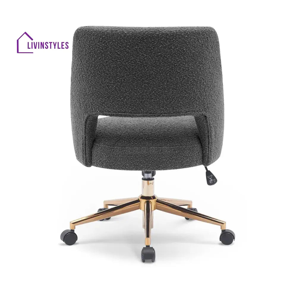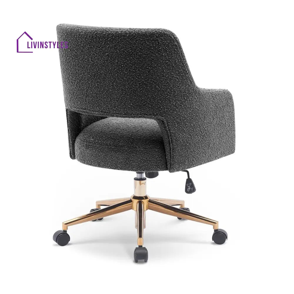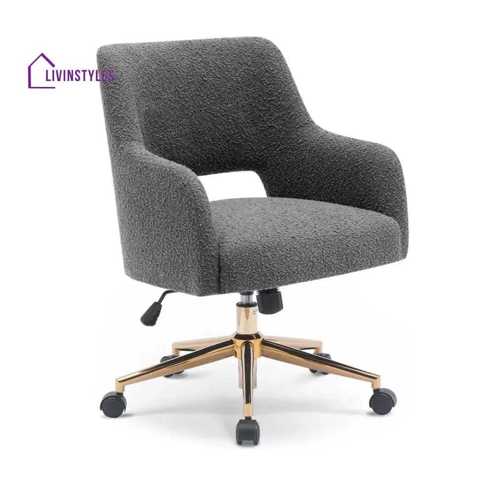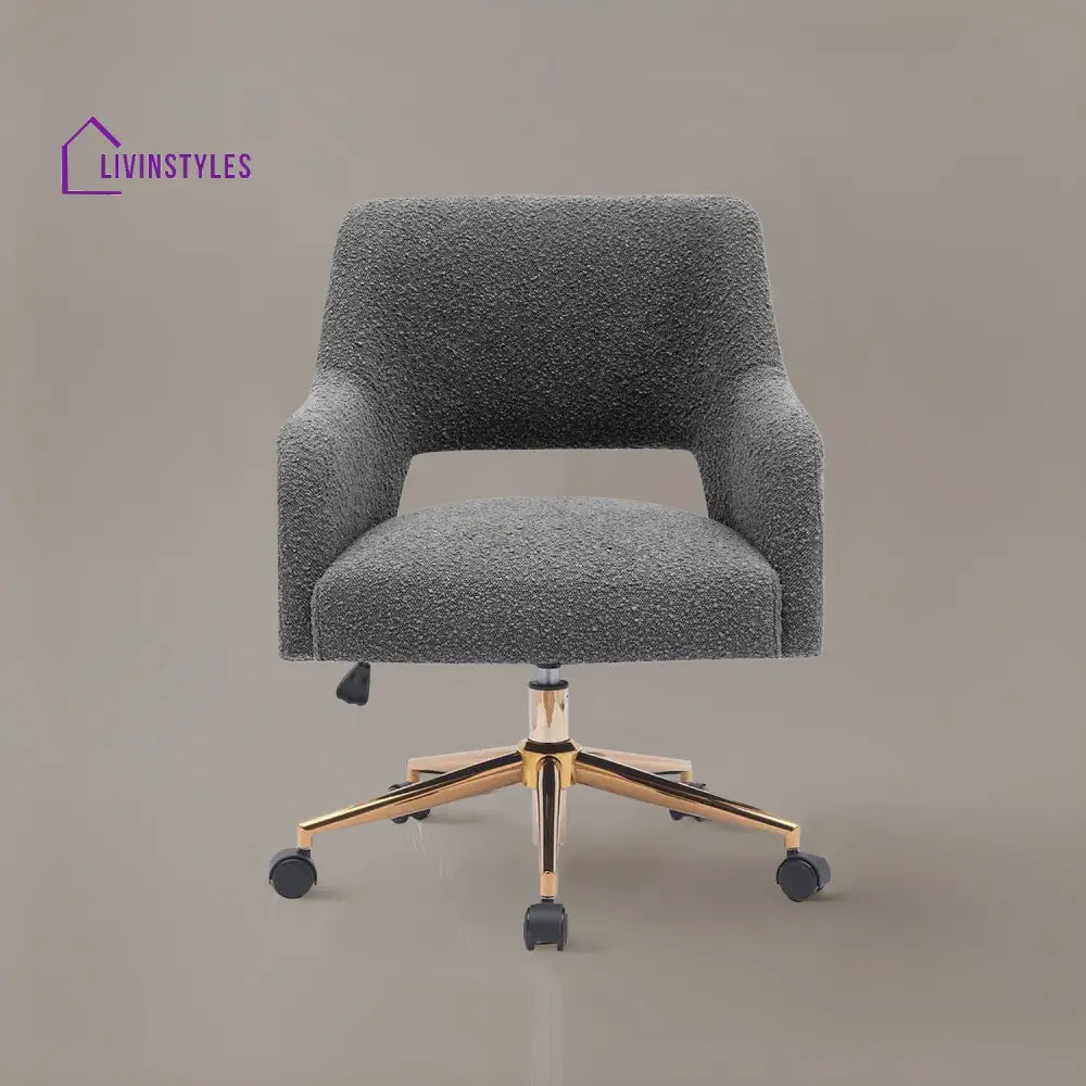 The Boucle Crafted Office Chair in Cream with armrests and wheels adds luxury to living rooms, bedrooms, dressing tables, or offices, combining comfort with elegant boucle upholstery and practicality.