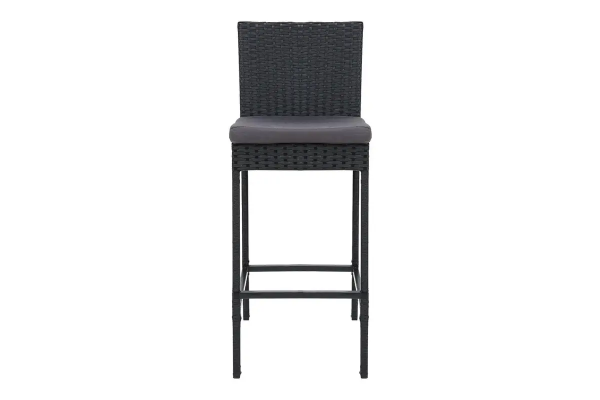 - Patio Bar Chair This includes high-top Bar chairs. The e-coated steel frames and hand-woven wicker seats are weather resistant to guard against inclement weather. The Bar stool is coated to guard against everyday wear and tear. The chairs can be easily stored under the high dining table making this set a perfect space saver for any outdoor area.