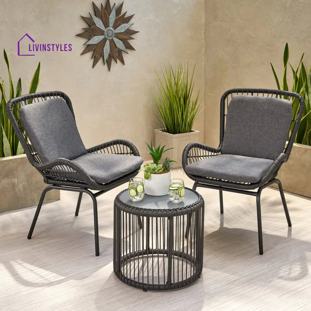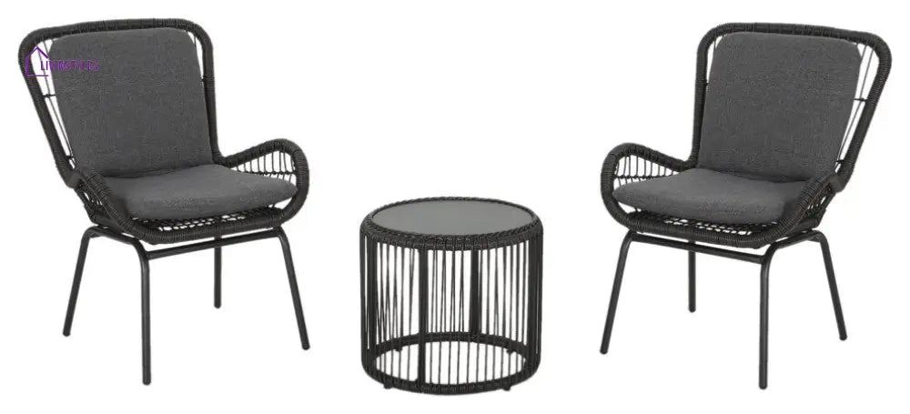 Alan Outdoor Patio Seating Set 2 Chairs And 1 Table Set (Black)