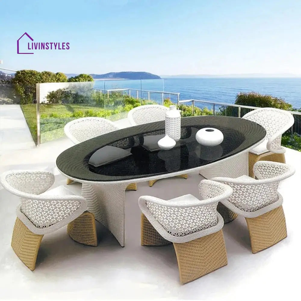 Kinjal Outdoor Patio Seating Set 6 Chairs and 1 Table Set (Tan + White)