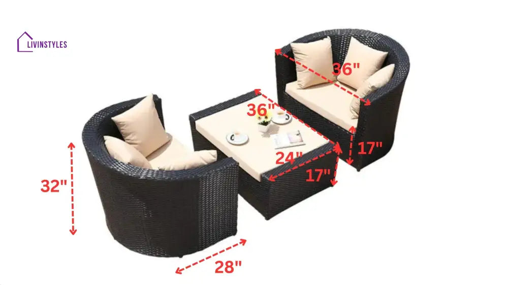 - 2 Single Seater Dimension: 36″Lx28″Wx32″H