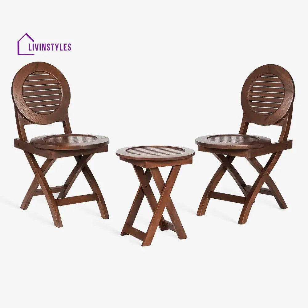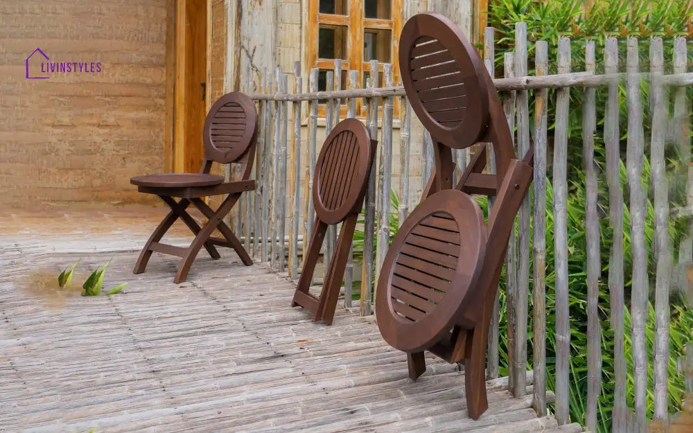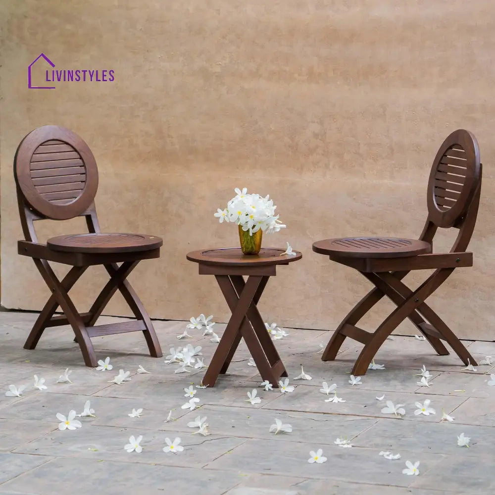 Osip Outdoor Folding Round Stool With 2 Folding Round Chairs
