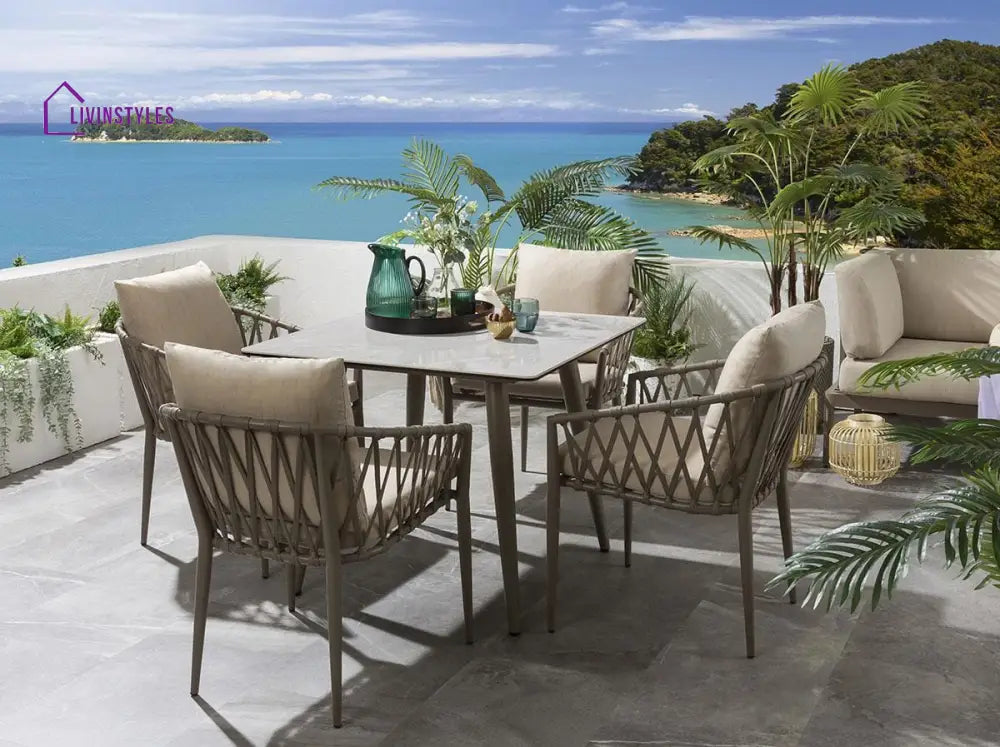 It is not what’s on the table that matters, it is about who sits on the chairs. Together is the best place to be, so dine with your beloved family in this affordable outdoor furniture set, appropriate for homes, cafes and restaurants. This outdoor table set provides you with a fine glass-top table and Four chairs with comfortable hand-rests.