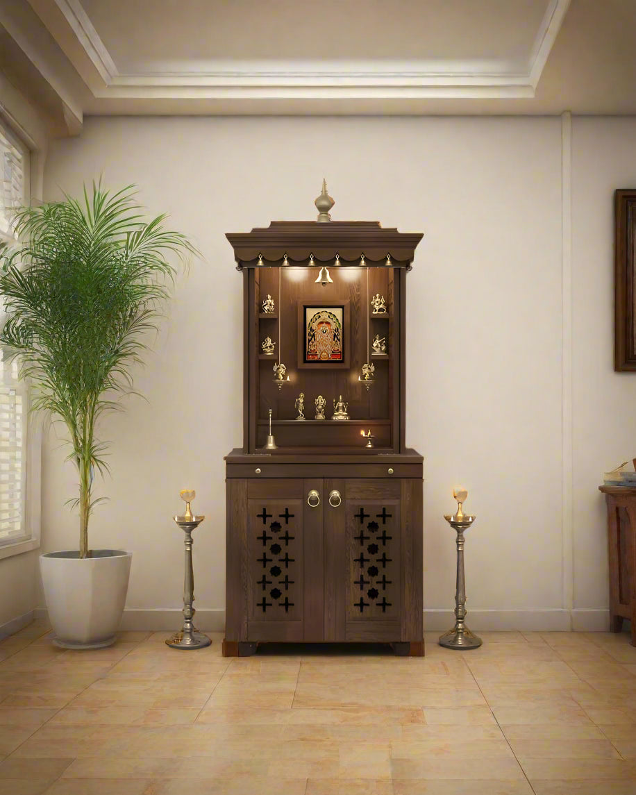 Galina Handcrafted Solid Wood Pooja Mandir for Home with Doors | Home Temple