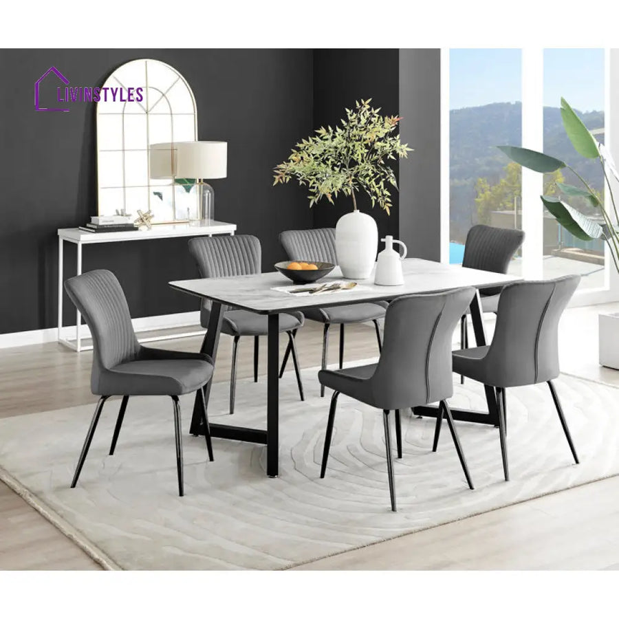 Choose from a 4-seater for compact dining spaces or a 6-seater for family meals and gatherings. Paired with standard chairs, this dining set offers the perfect balance of comfort and sophistication for everyday use or special occasions.