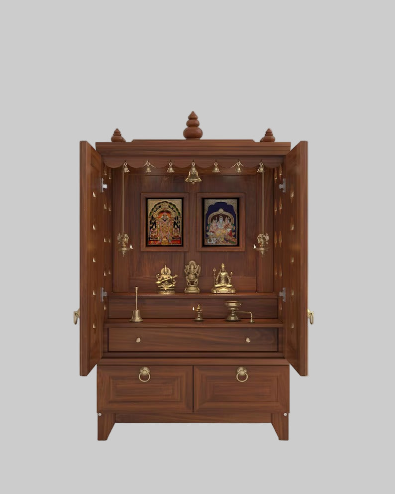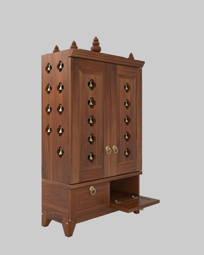 Yulia Solid Wood Pooja Mandir for Home with Doors | Handcrafted Home Temple