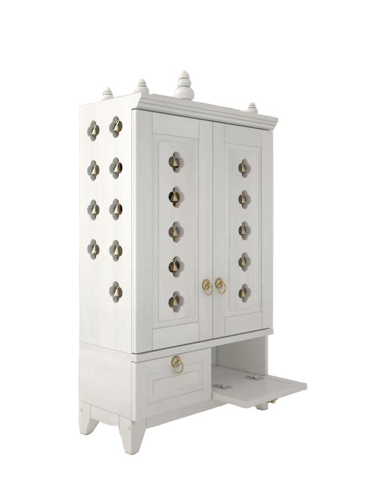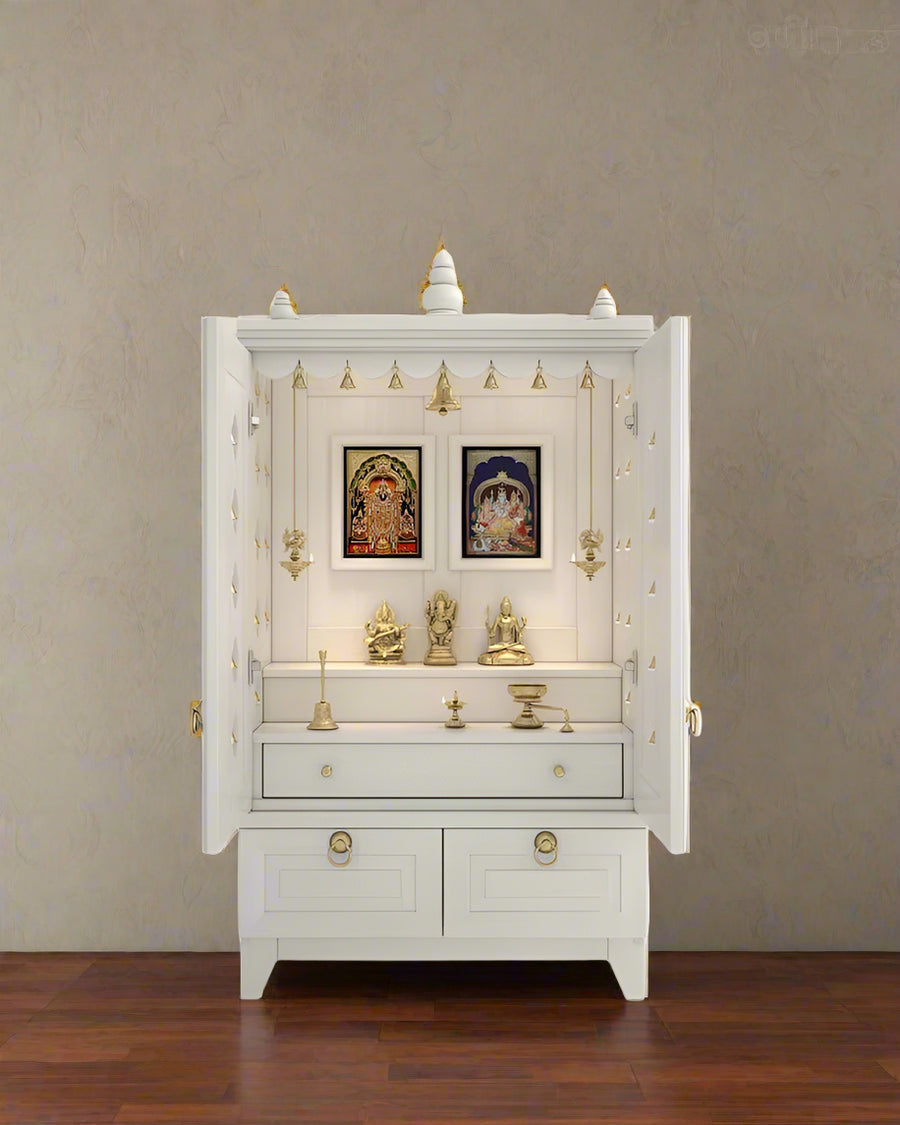 Yulia Solid Wood Pooja Mandir for Home with Doors | Handcrafted Home Temple - White