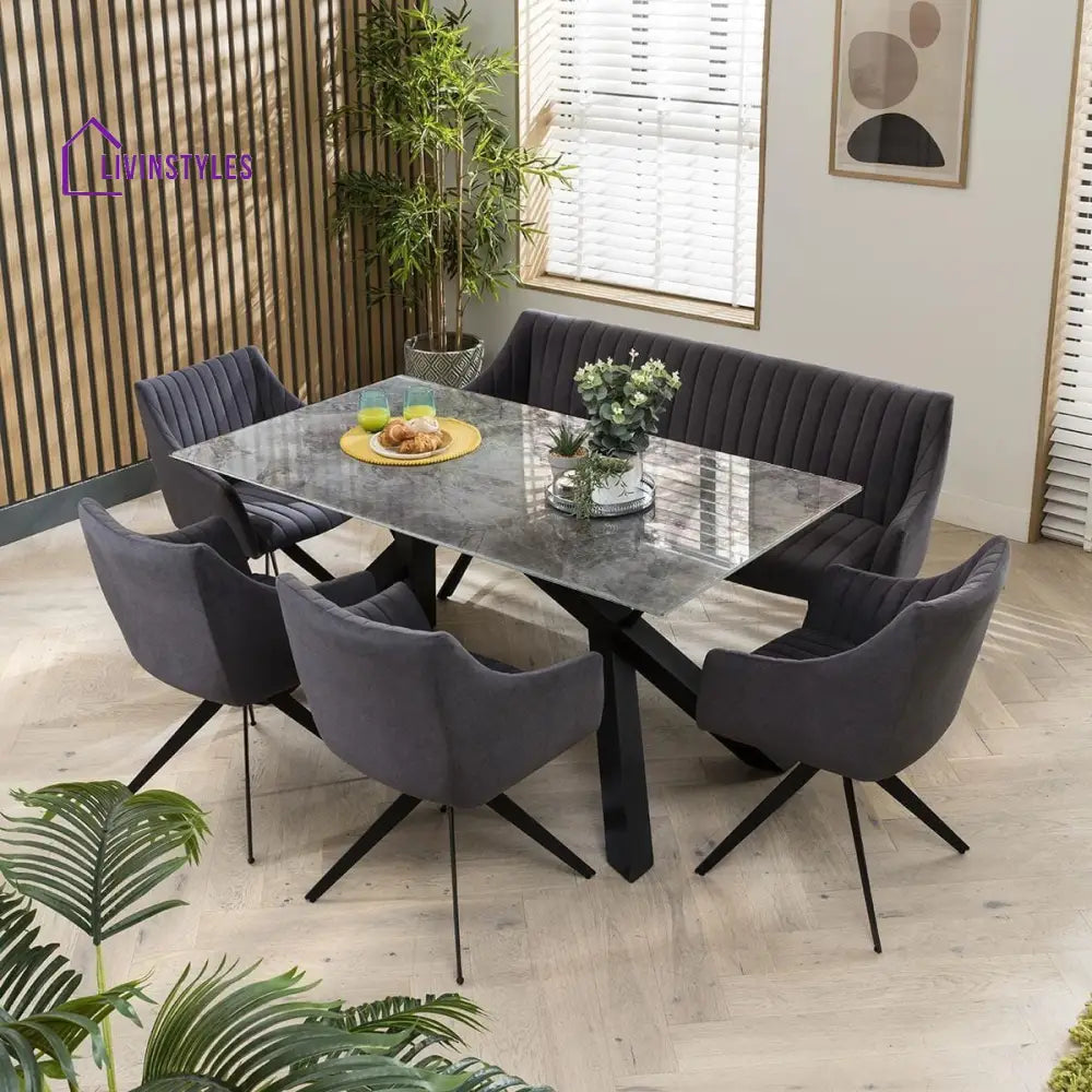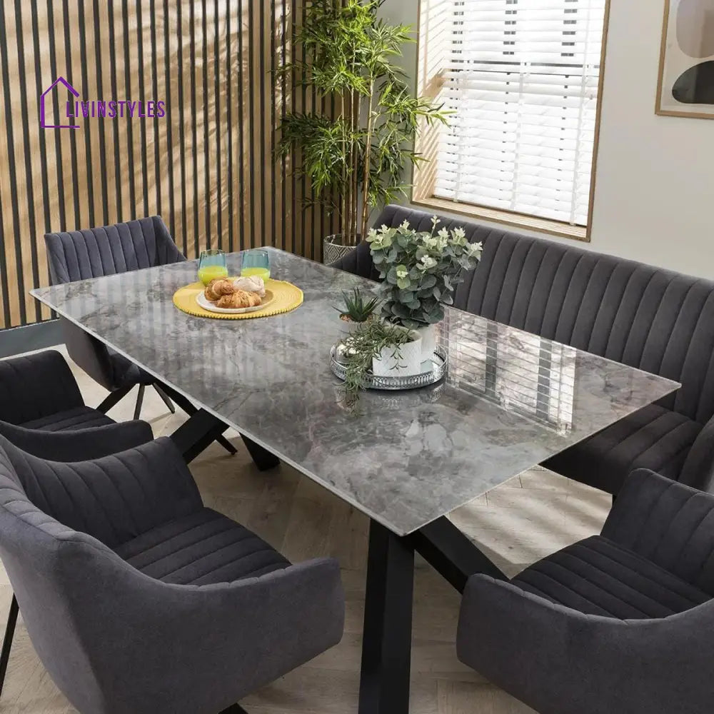Add a touch of sophistication to your dining space with this 6-Seater Dining Table Set, featuring a luxurious composite marble tabletop. Designed with both elegance and durability in mind, it provides a spacious surface for family meals, entertaining guests, or formal gatherings.