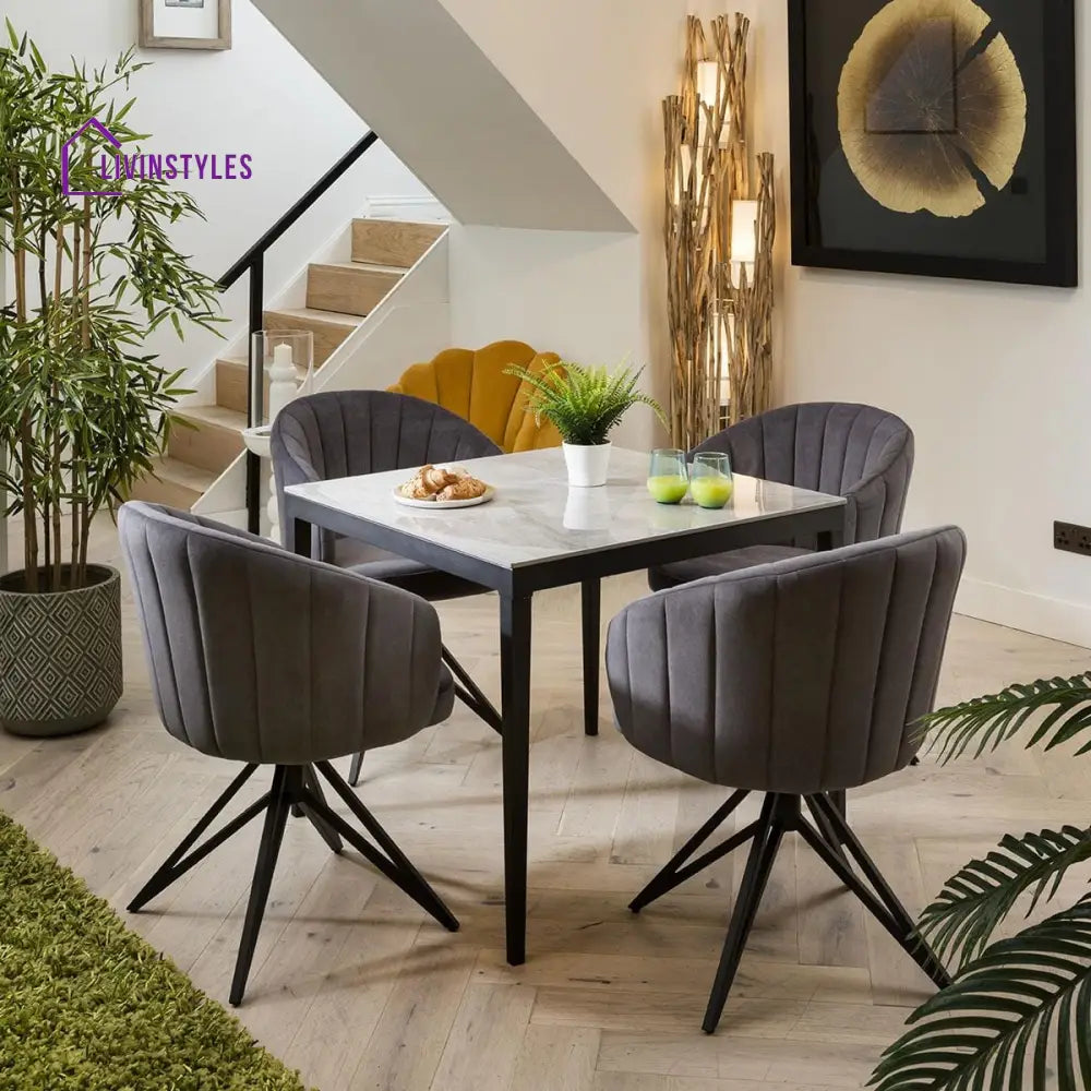 Create a modern centerpiece for your dining space with this 4-Seater Square Dining Set, crafted with a premium stainless steel frame and a grey ceramic marble top in Italian pattern. Compact yet stylish, it offers the perfect balance of durability and elegance, making it ideal for small to medium dining areas.