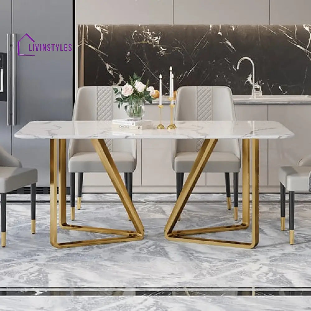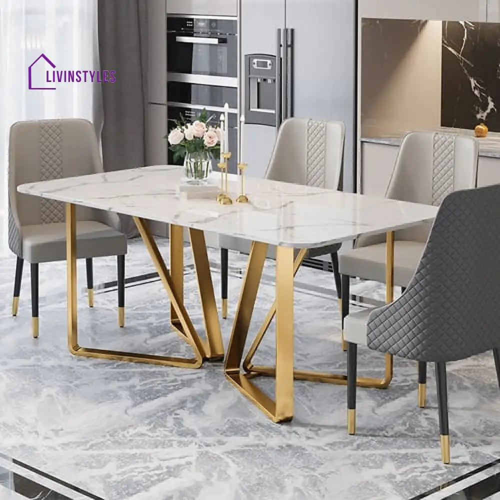 Enhance your dining space with this luxurious stainless steel dining table, crafted with a PVD-coated golden frame for lasting shine and durability. The ceramic marble top in an Italian pattern adds sophistication and easy maintenance, while an optional upgrade to original marble is available for those who prefer natural stone.