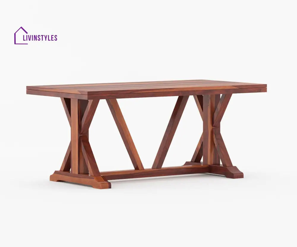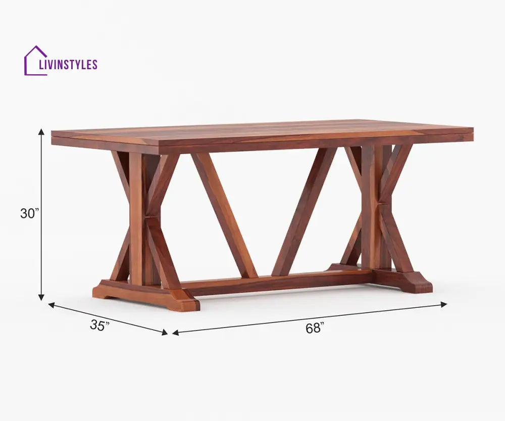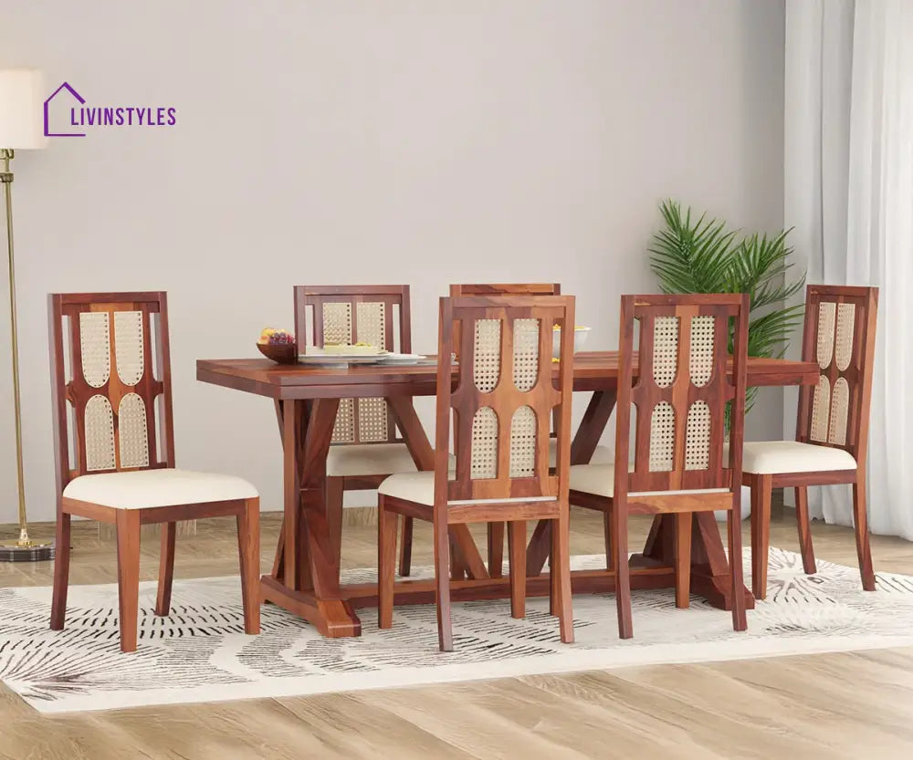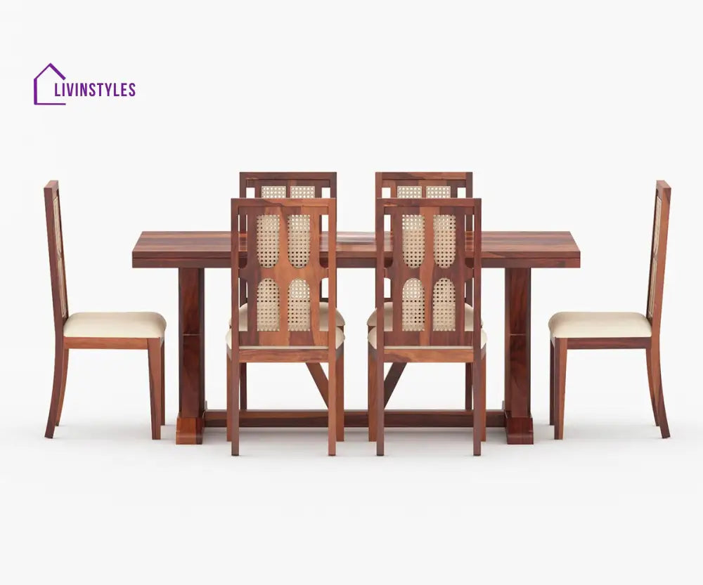 Semyon Solid Wood Sheesham 6 Seater Dining Set with Cushion (Honey Finish)