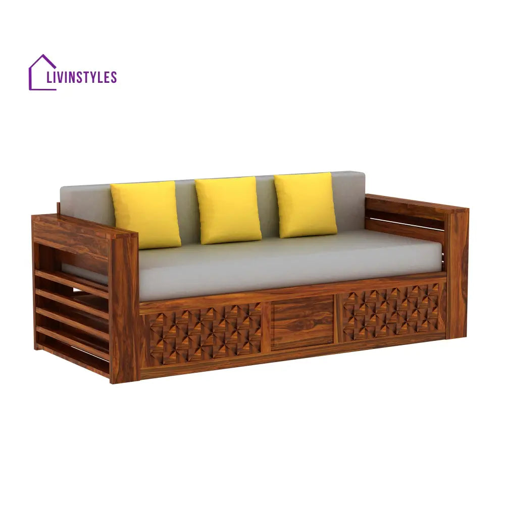 Product Name: Callie Solid Sheesham Wood 3-Seater Sofa Cum Bed by LivIn Styles