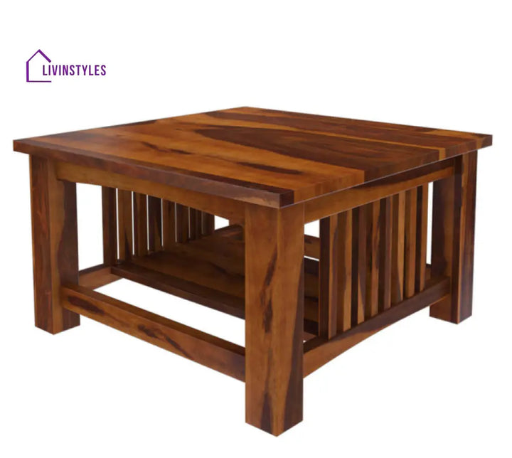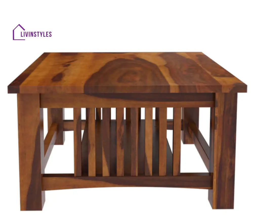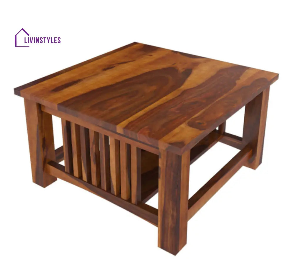 Rustic Solid Wood Square Coffee Table with wood strips on the sides that highlight the beauty of the Stunning Solid Wood.