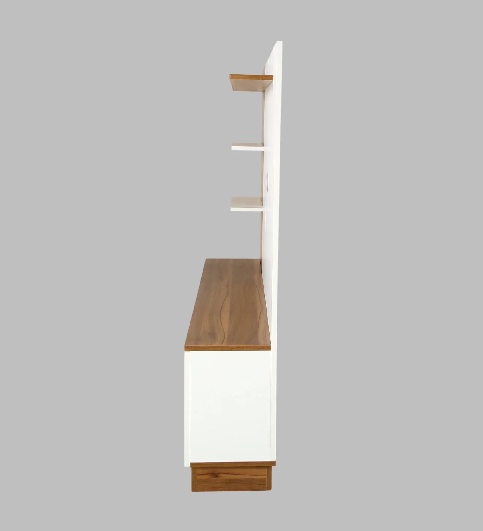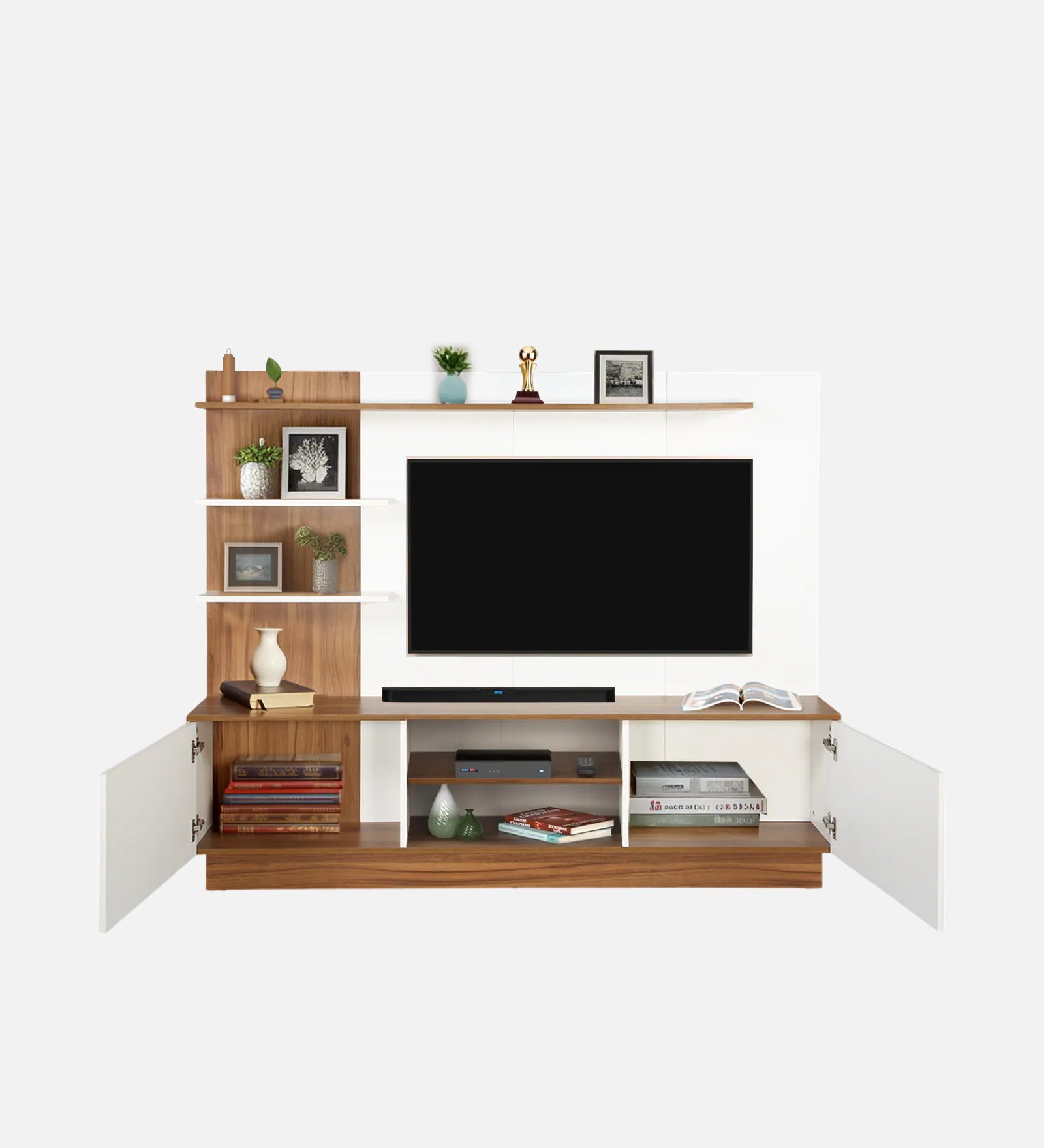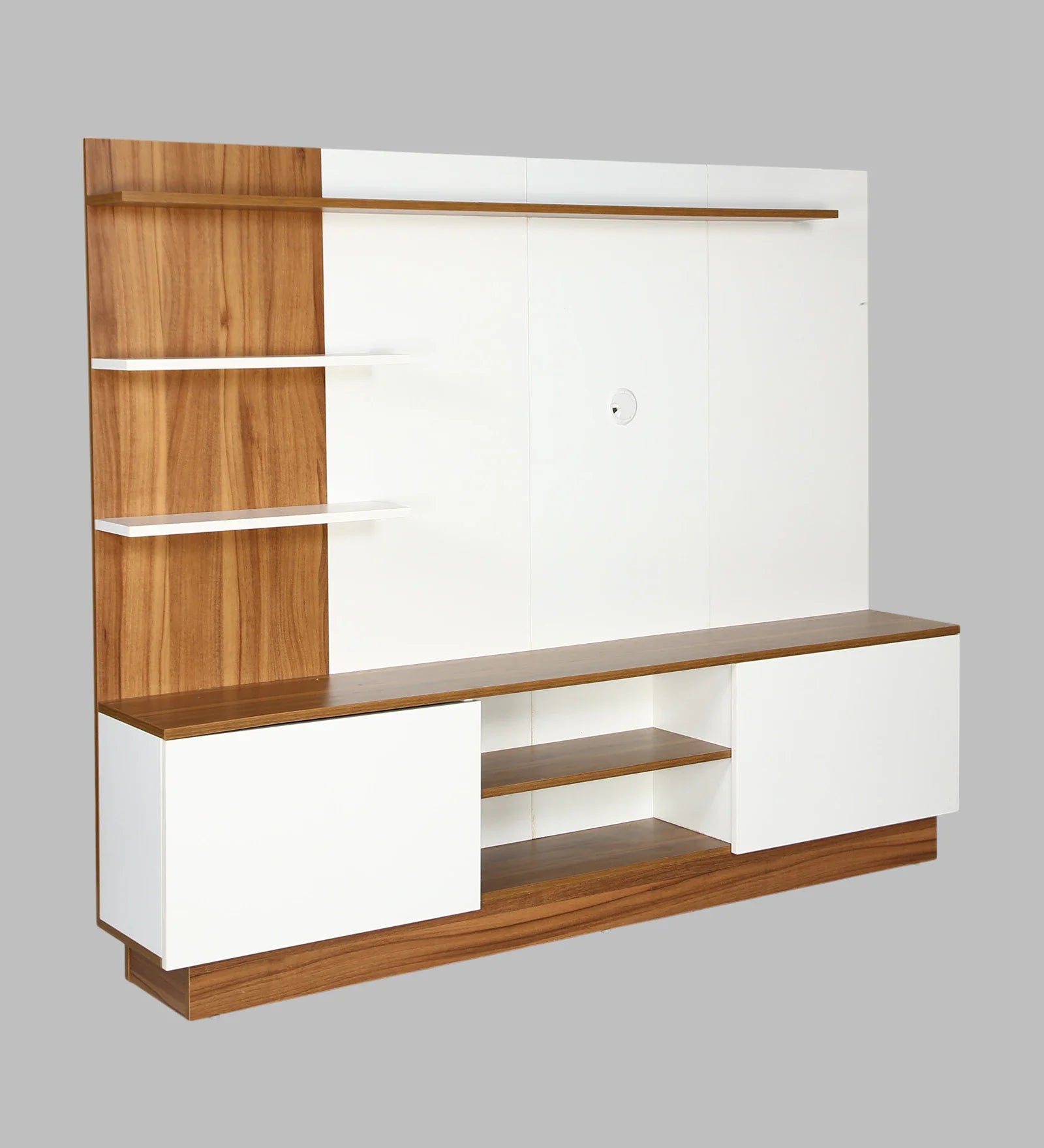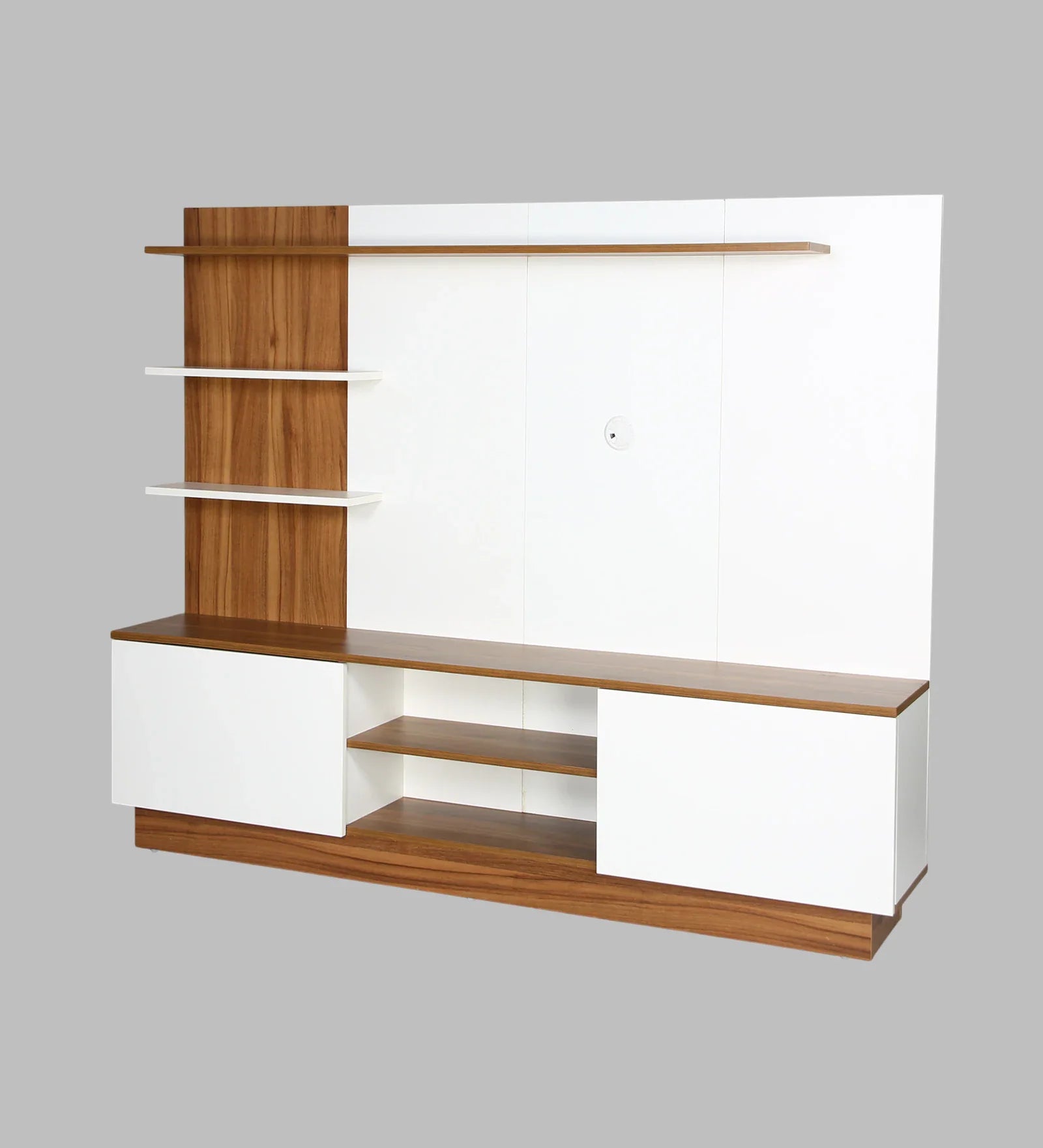 Elevate your living space with the Modora Luxe TV Console, a premium TV unit crafted from high-quality engineered wood. Blending modern minimalism with natural warmth, this unit features a dual-tone finish of rich walnut and crisp matte white for a sophisticated look. With sleek open shelves, enclosed cabinets, and a sturdy top platform, it offers ample space for decor, media devices, and storage. Designed to complement contemporary interiors, the vertical paneling and floating shelf design add visual height and elegance to your room. Perfect for TVs up to 65 inches, the Modora Luxe is where function meets style.