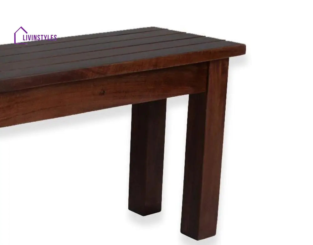 - The bench is crafted from Sheesham wood, known for its durability and beautiful grain.