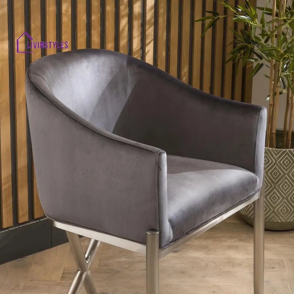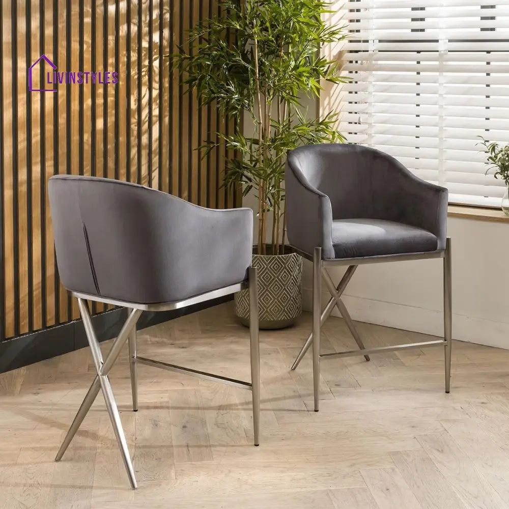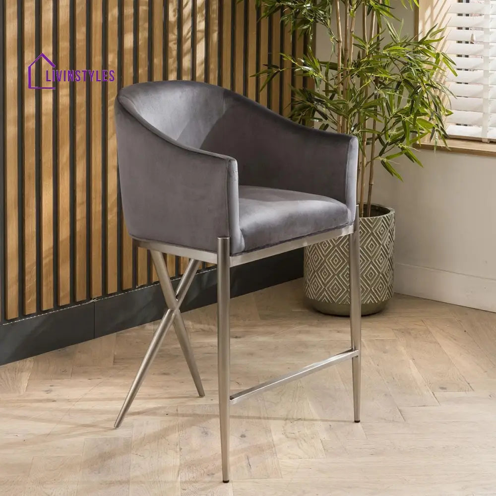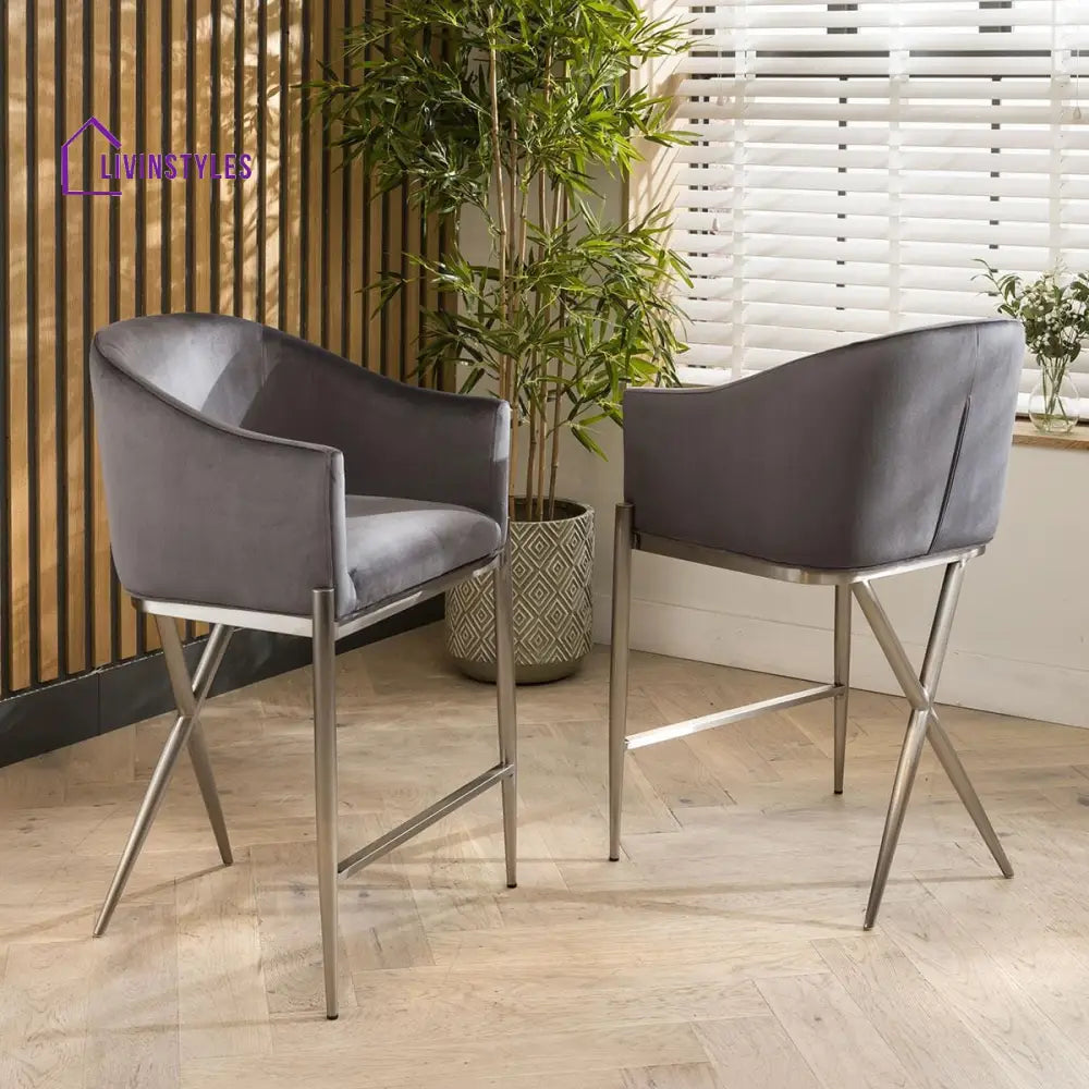 2 Zenith Counter Height Velvet Bar Stools Grey