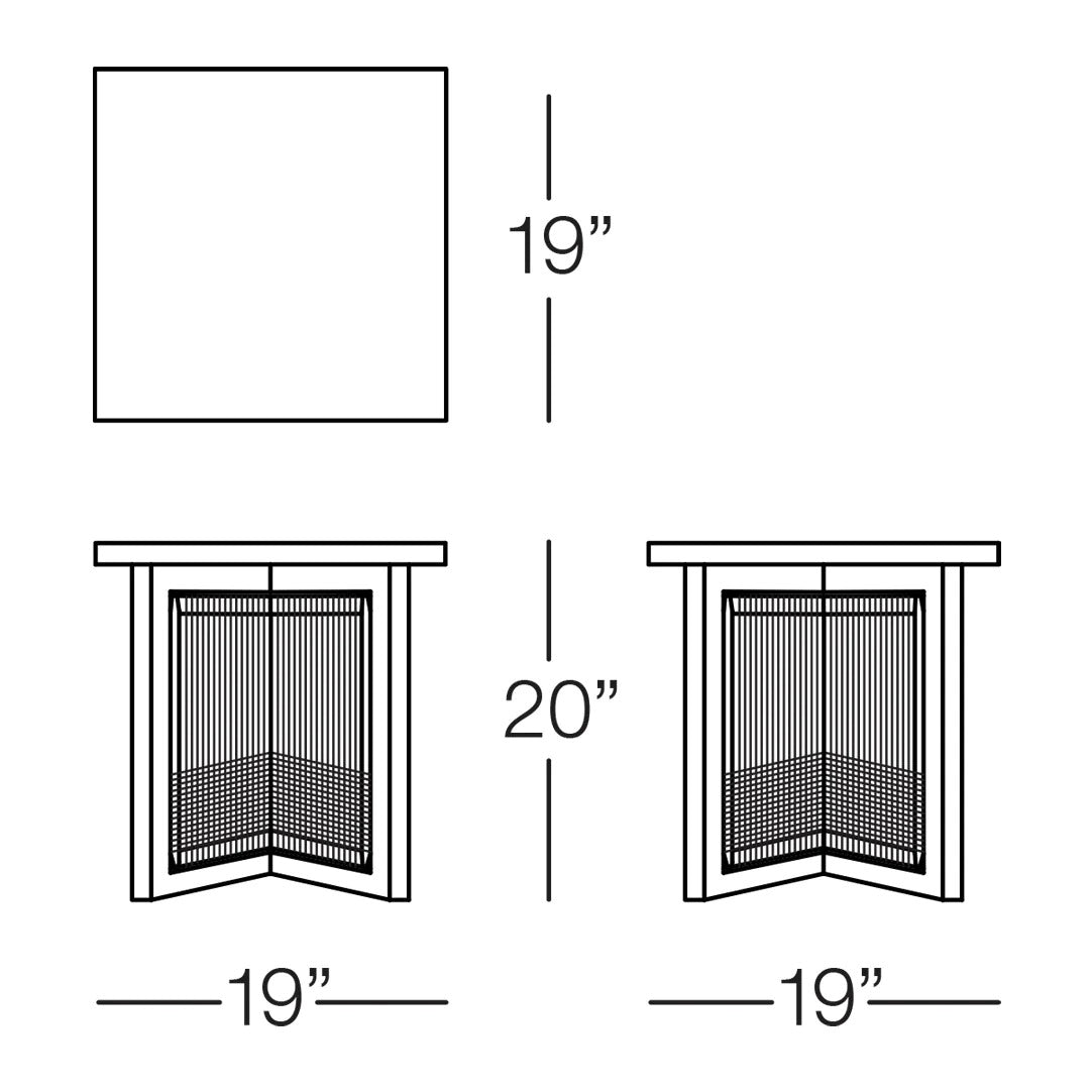 Side Table: Width 19 inch,D19 inch, Height 20 inch